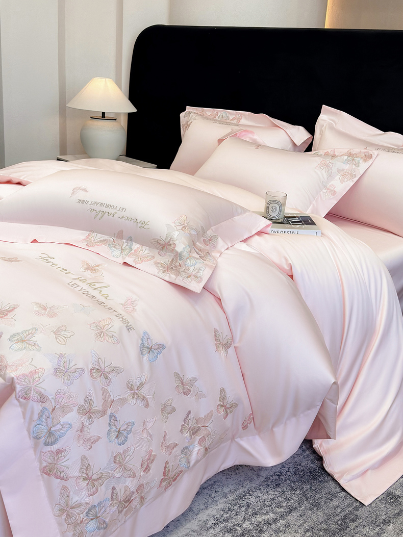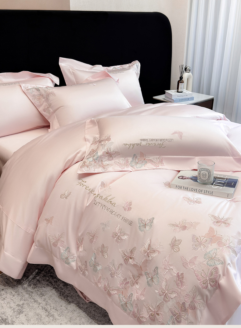 • 91家纺网 家纺一手货源 找家纺 (总)星蕴家纺 2026新款50贡缎长绒棉纯棉绣花四件套-花瑾,花瑾-邂逅粉,花瑾-晴山蓝,花瑾-梦幻紫,花瑾-清新绿
