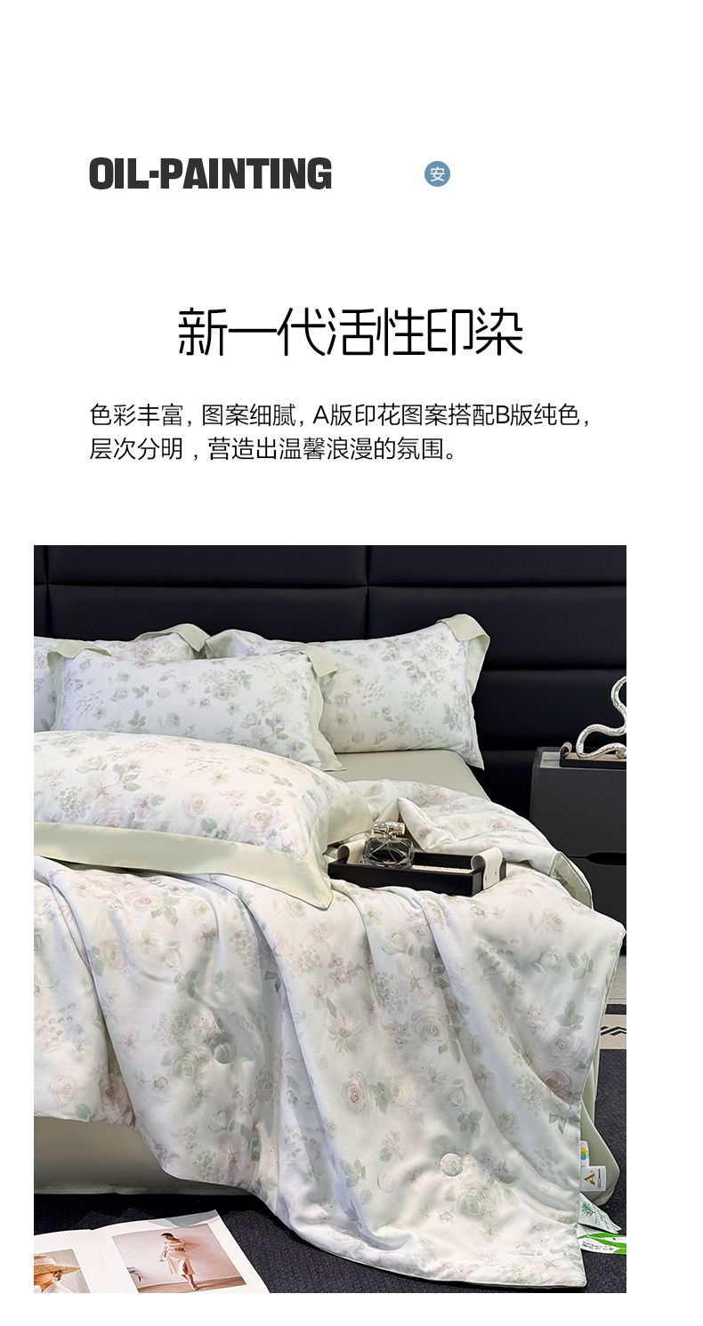 当前位置: 91家纺网 > 商品网购 > 床品套件 > 四件套 > 夏被四件套 > 宜家坊 2026春夏新款莱赛尔天丝夏被嵌绳款数码印花单夏被夏被四件套 念池花