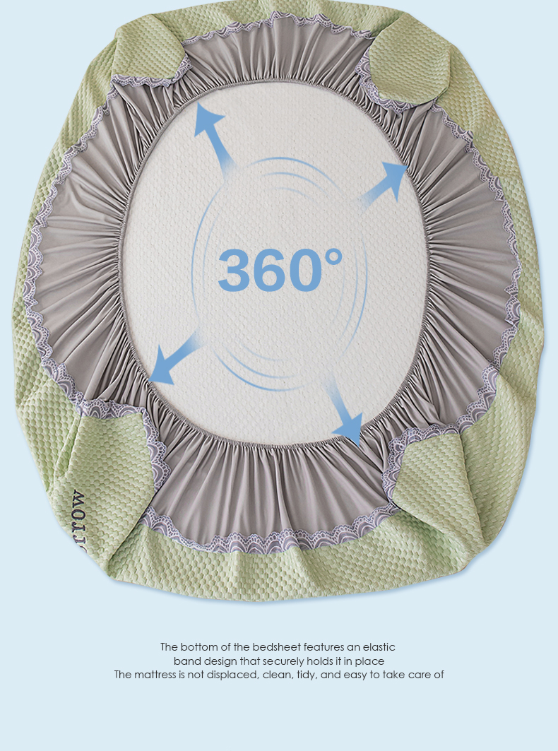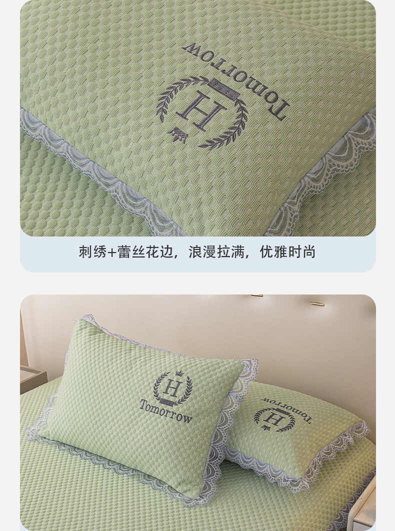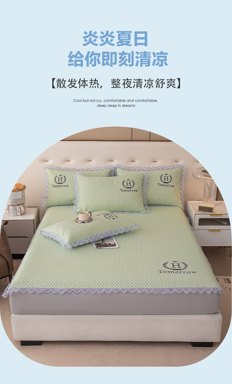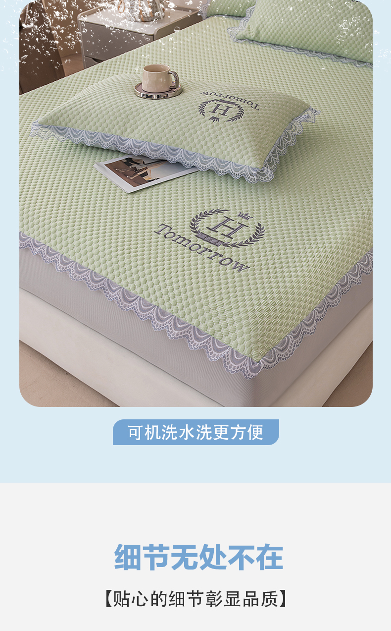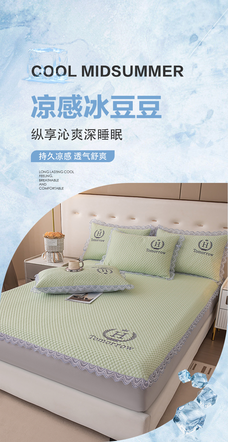 (总)优姿家纺 2025新款500克冰豆豆床裙凉席三件套,冰川蓝,高级灰,公主粉,奶油咖,青草绿,天空蓝
