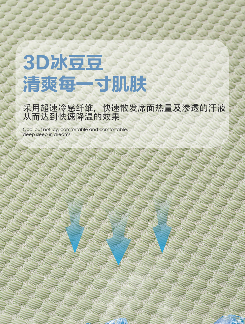 (总)优姿家纺 2025新款500克豆豆席子凉席床笠款三件套,冰川蓝,高级灰,公主粉,奶油咖,青春绿,天空蓝