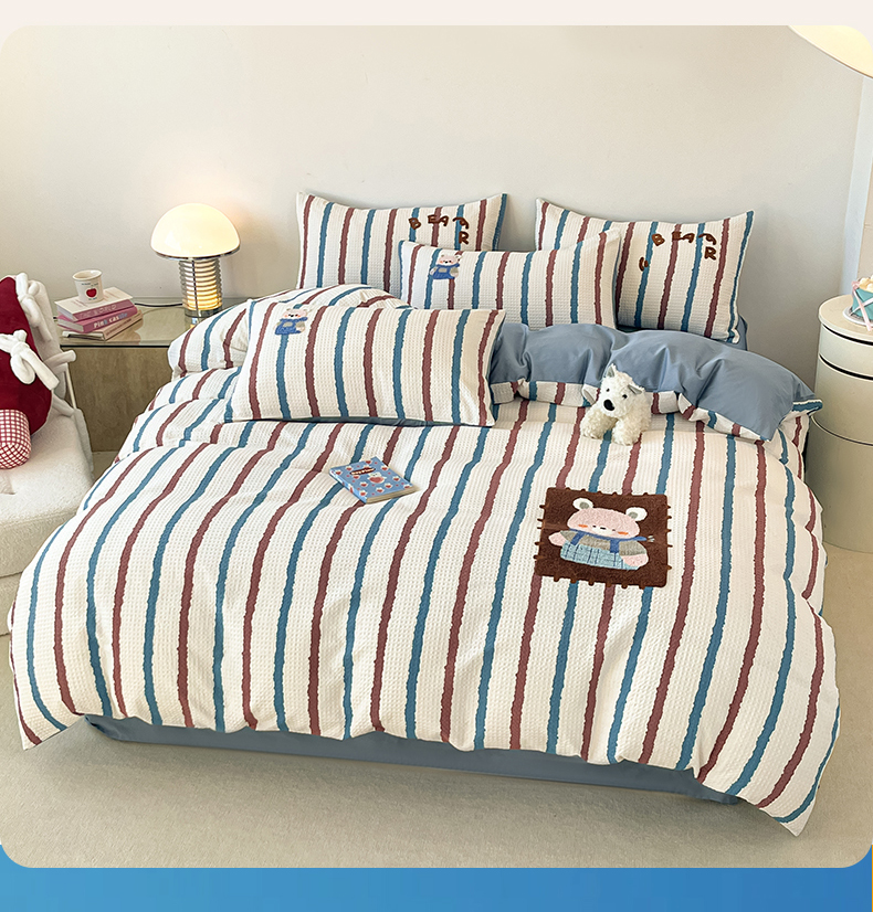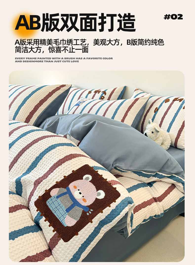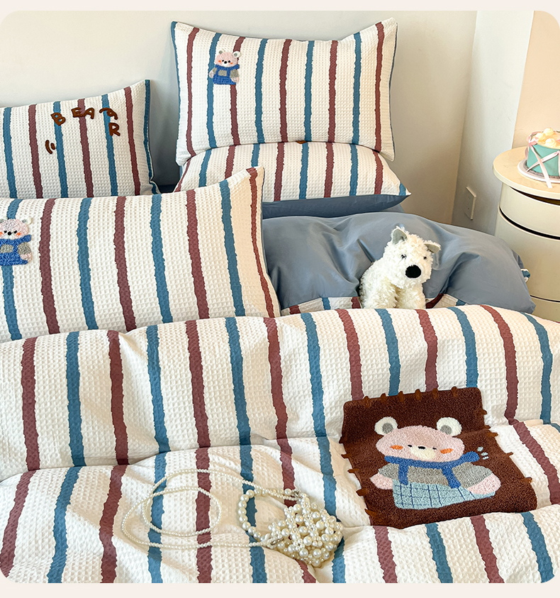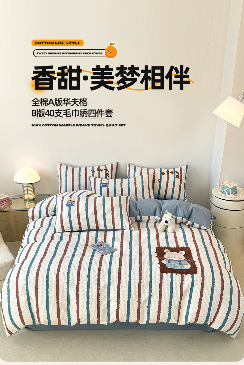 当前位置: 91家纺网 > 商品网购 > 床品套件 > 四件套 > 全棉普通四件套 > 眷恋家纺 2026新款全棉纯棉A版华夫格B版40支毛巾绣四件套 安可拉熊