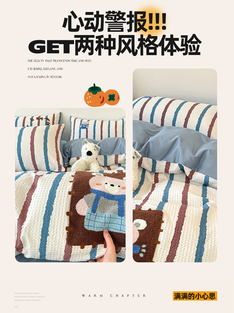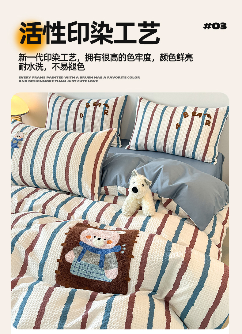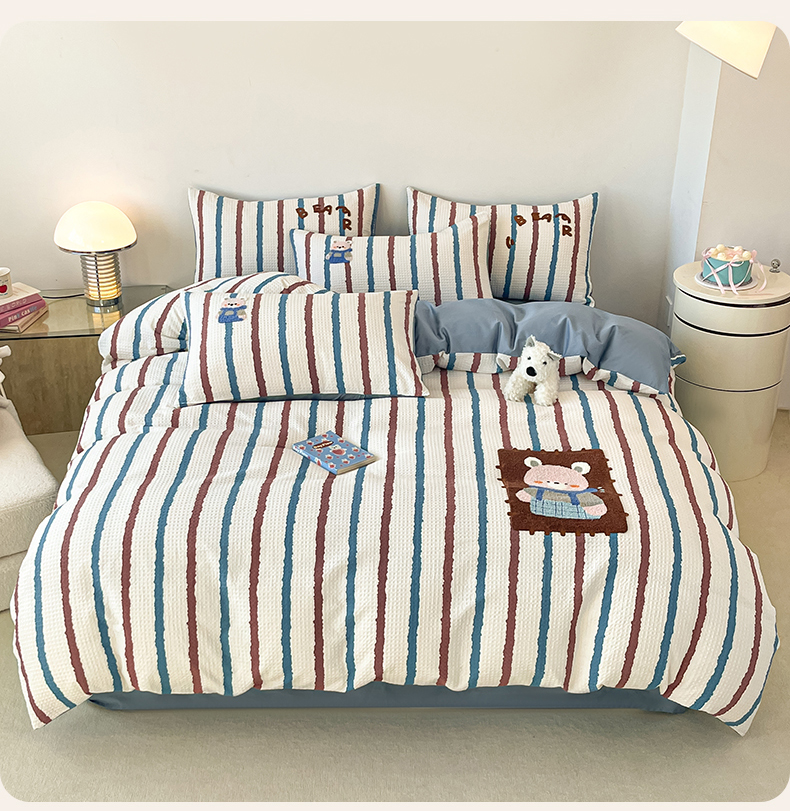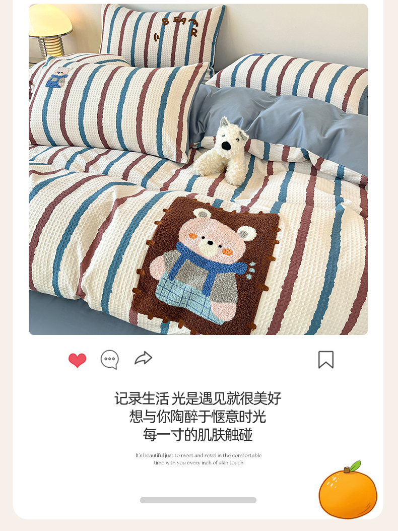 当前位置: 91家纺网 > 商品网购 > 床品套件 > 四件套 > 全棉普通四件套 > 眷恋家纺 2026新款全棉纯棉A版华夫格B版40支毛巾绣四件套 安可拉熊