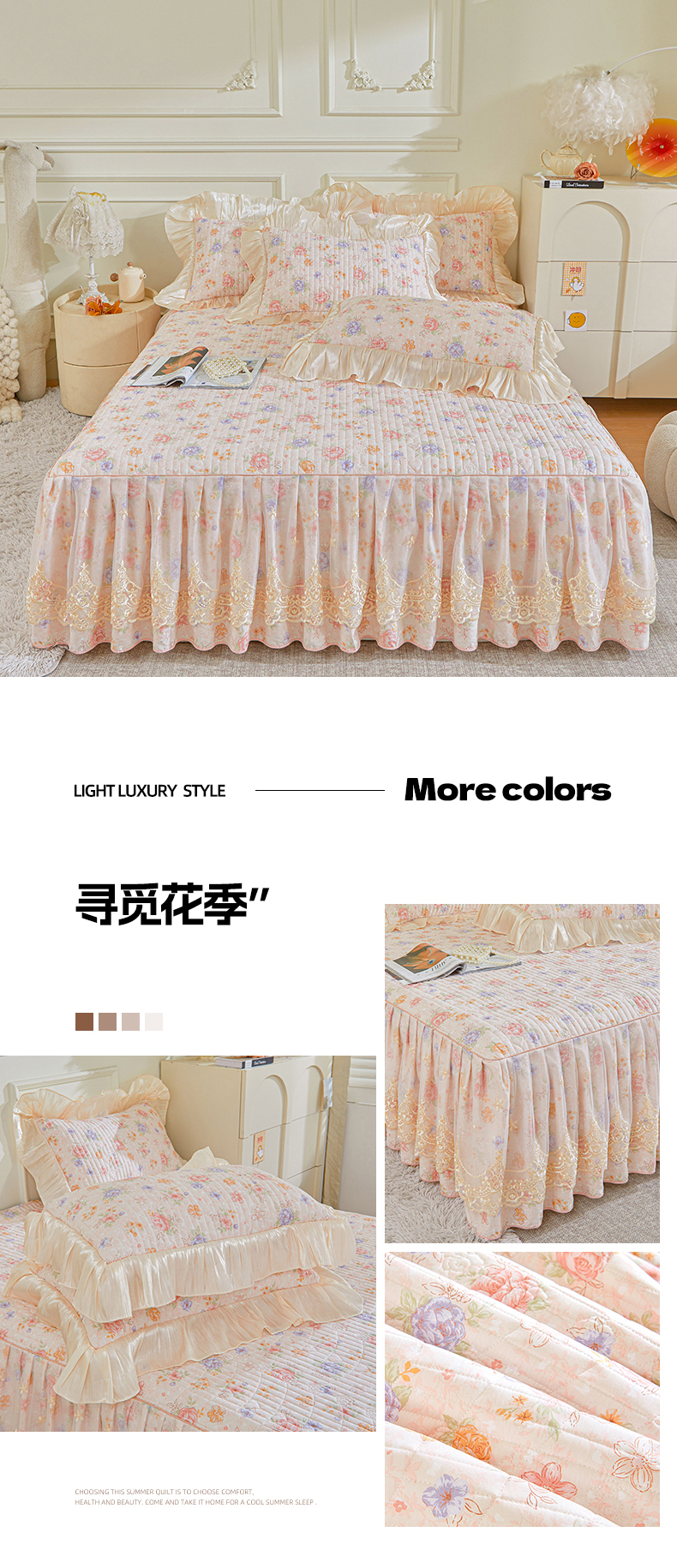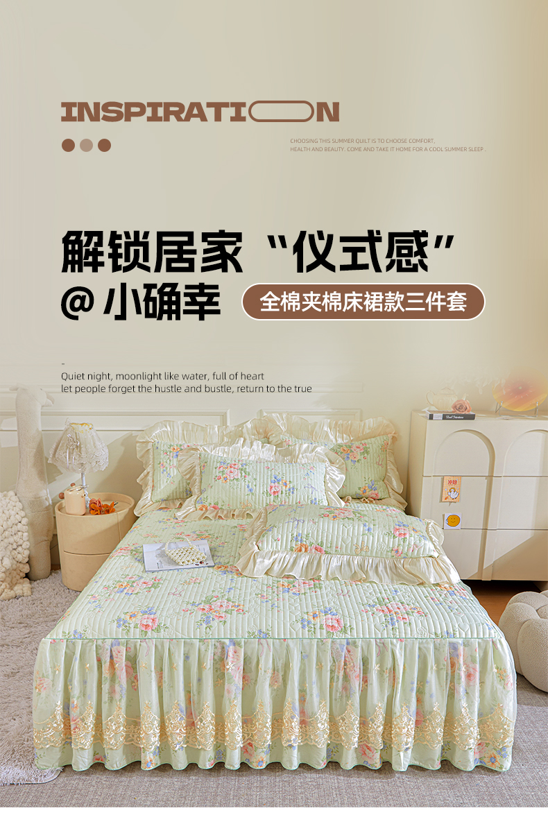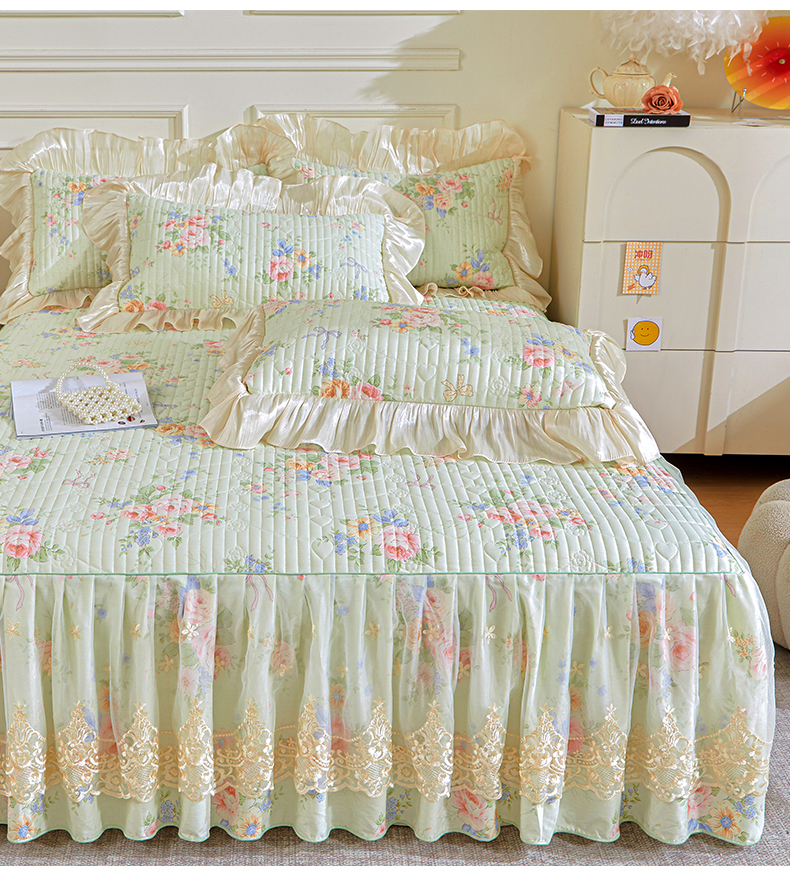 (总)宜凡家纺 2026新款全棉印花公主风夹棉床盖三件套,逐梦,假日,可颂,梦娜,木槿,乔屿