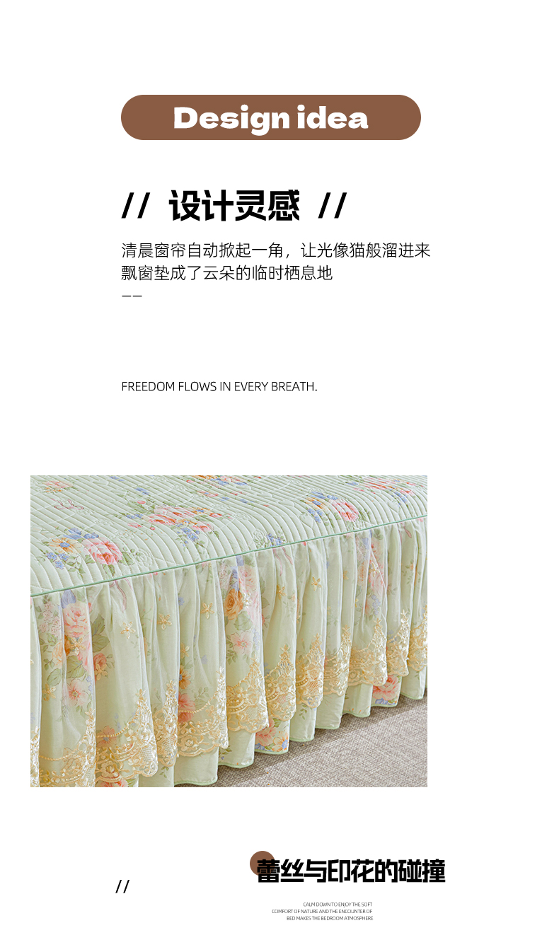 (总)宜凡家纺 2026新款全棉夹棉公主风床笠三件套,尘世浮华,春日微光,花黛织梦,曼妙花香,晴空,寻觅花季