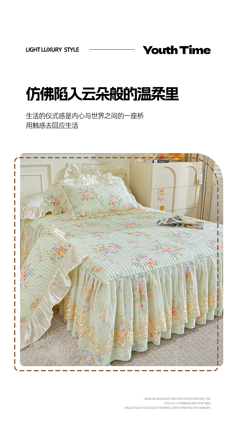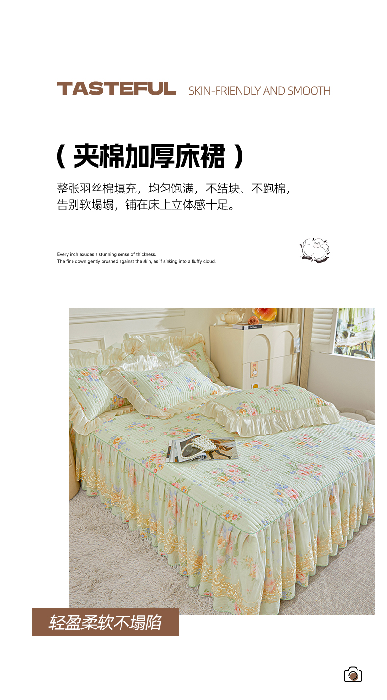 (总)宜凡家纺 2026新款全棉法式夹棉床裙款三件套,尘世浮华,春日微光,花黛织梦,曼妙花香,晴空,寻觅花季