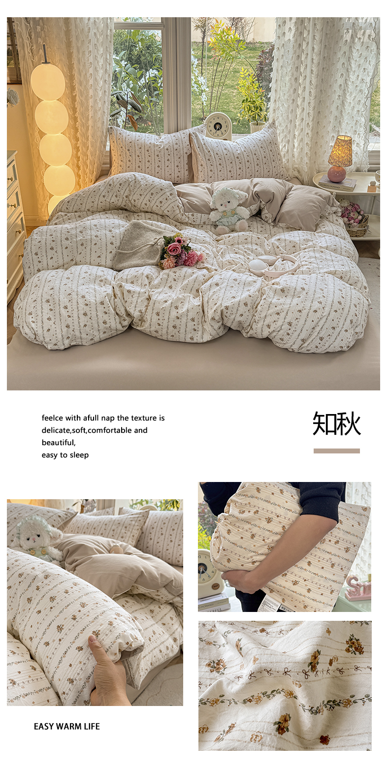 (总)豫见家纺 2026新款古法水洗仿棉云感纱四件套,小鱼心事,爱心格纹,安妮碎花,豹纹咖,彩波波,彩心心,草莓点点,晨露,初夏,梵高映像,乖巧KT-粉,乖巧KT-蓝,赫莲娜,灰条樱桃,吉米兔-灰,吉米兔-紫,浆果,兰枝玉树,梦屿,秘密花园,蜜恋樱桃,木马乐园,南瓜派,千野合,甜心乐园,晚安小星星,夏日初恋,小黄花,小猫钓鱼,小幸福,樱川桃井,知秋