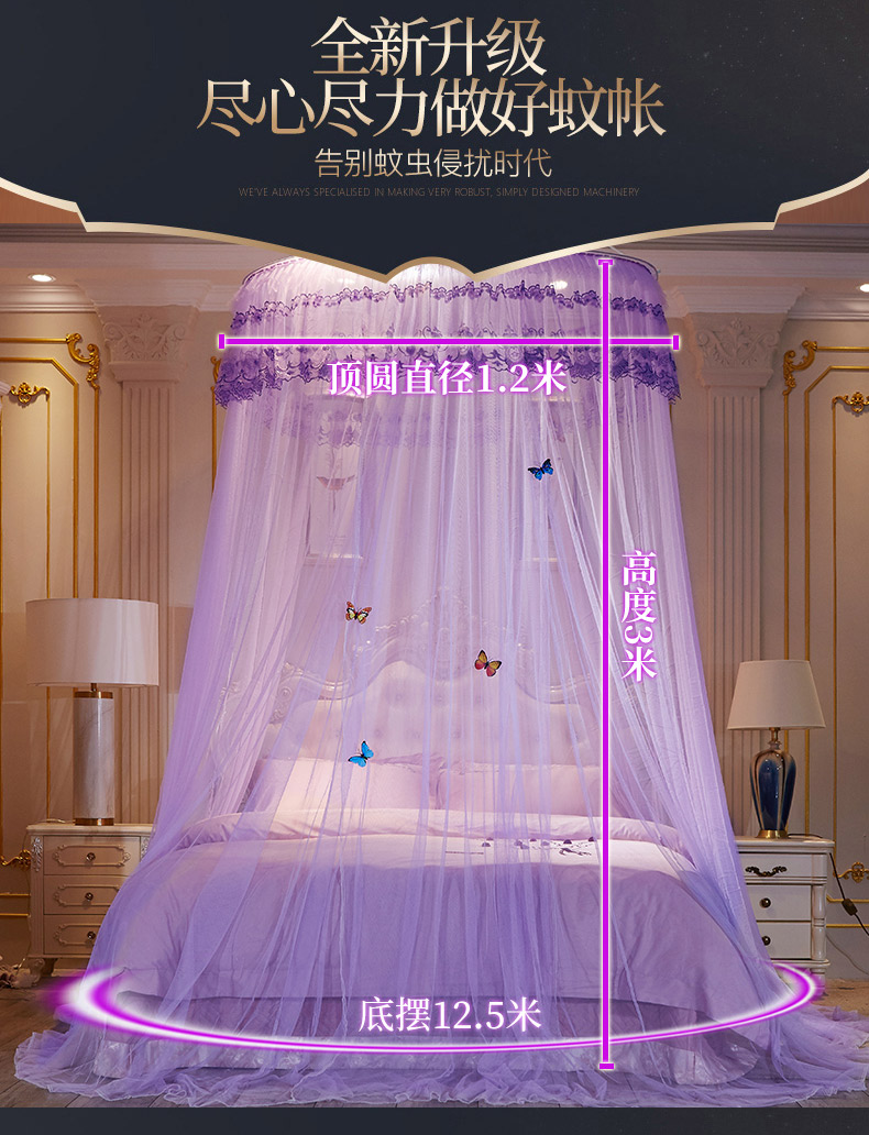 当前位置: 91家纺网 > 商品网购 > 床上用品 > 蚊帐 > 吊顶蚊帐 > 舞夜盛世 2026新款直径1.2米/吊挂圆顶吊顶落地蚊帐-常年有货-D-2 D2-紫色