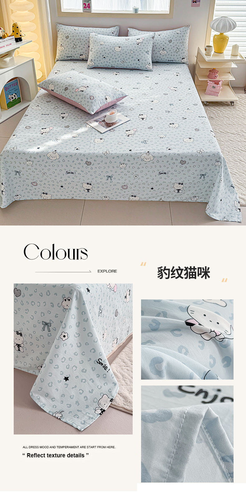 (总)小蓝孩家纺 2026新款12868全棉印花单床单(联系商家可打折,尺寸可定制),安缦小熊,豹纹猫咪,丛林蜜语,风铃小兔,告白兔,果味小森林,哈哈狗,假日小狗,可爱颂,领结熊宝,萌宠伙伴,奶酪幼儿园,奶油阿布-蓝,森林兔,太空梦乐园,糖纸童年,甜心猫咪,星星凯蒂猫,熊猫鸭鸭乐-绿,忧郁棕熊