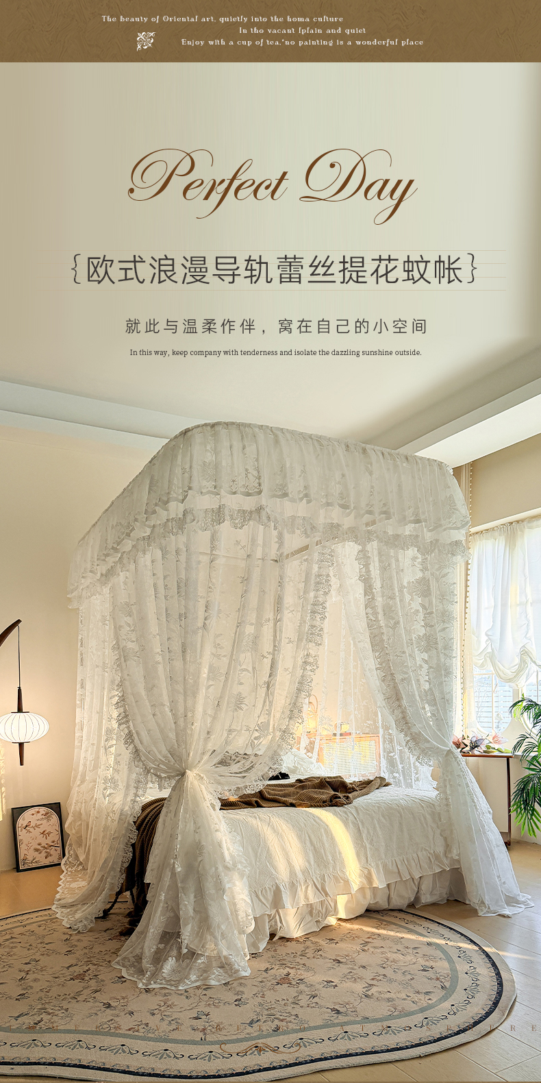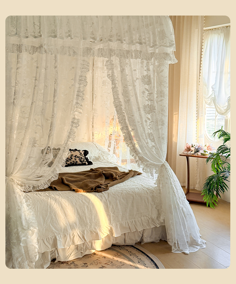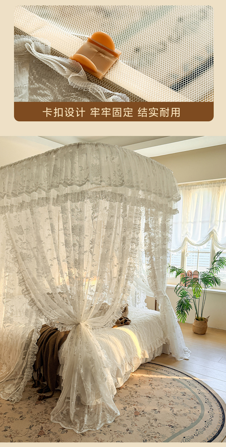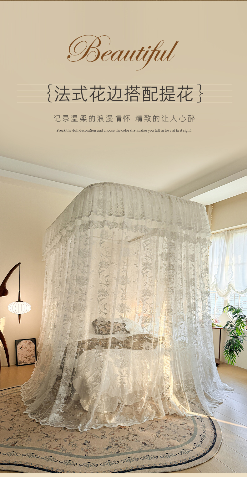商品名称:都市缘蚊帐 2026新款浪漫303新款欧式蕾丝轨道蚊帐 春日里-奶油白