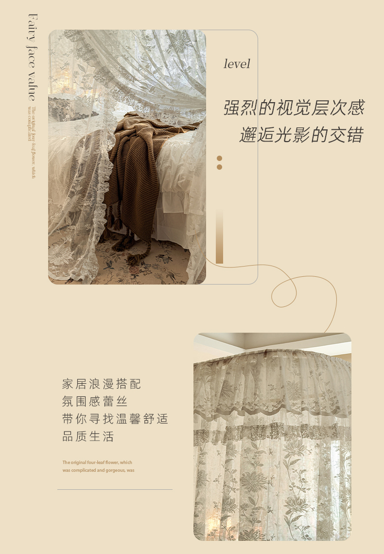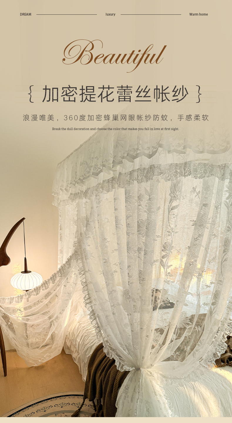 (总)都市缘蚊帐 2026新款春夏落地豪华高端蕾丝提花款导轨蚊帐-玫瑰庄园-905款,905玫瑰庄园-奶油白,905玫瑰庄园-奶油杏,905玫瑰庄园-奶油玉