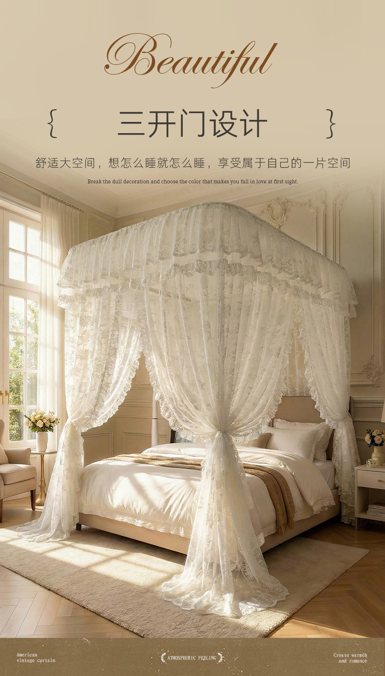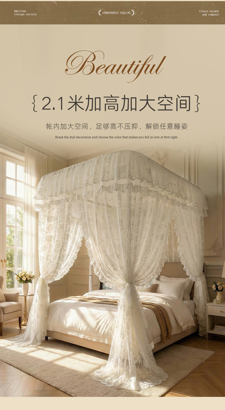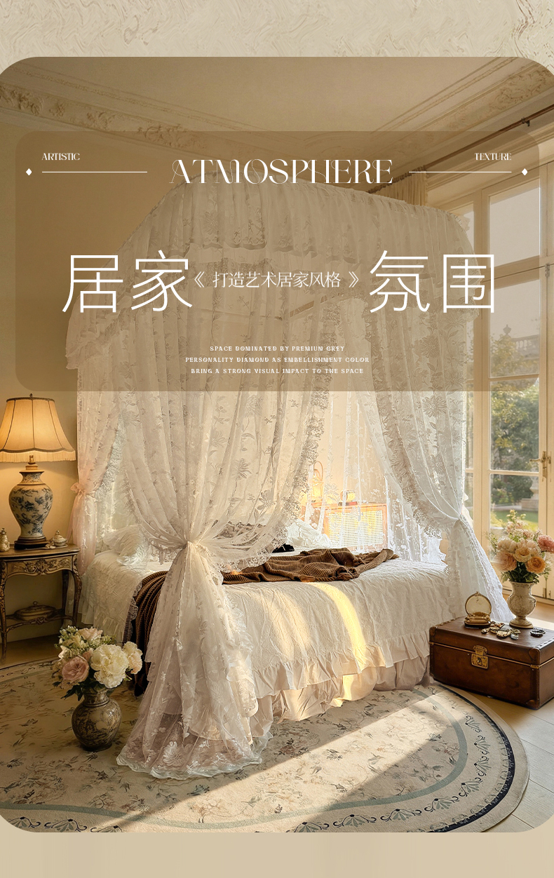 (总)都市缘蚊帐 2026新款浪漫905多丽棉纱落地宫廷蚊帐,麦芽杏-场景1,麦芽杏-场景2,粉扑色,摩卡,云雾白