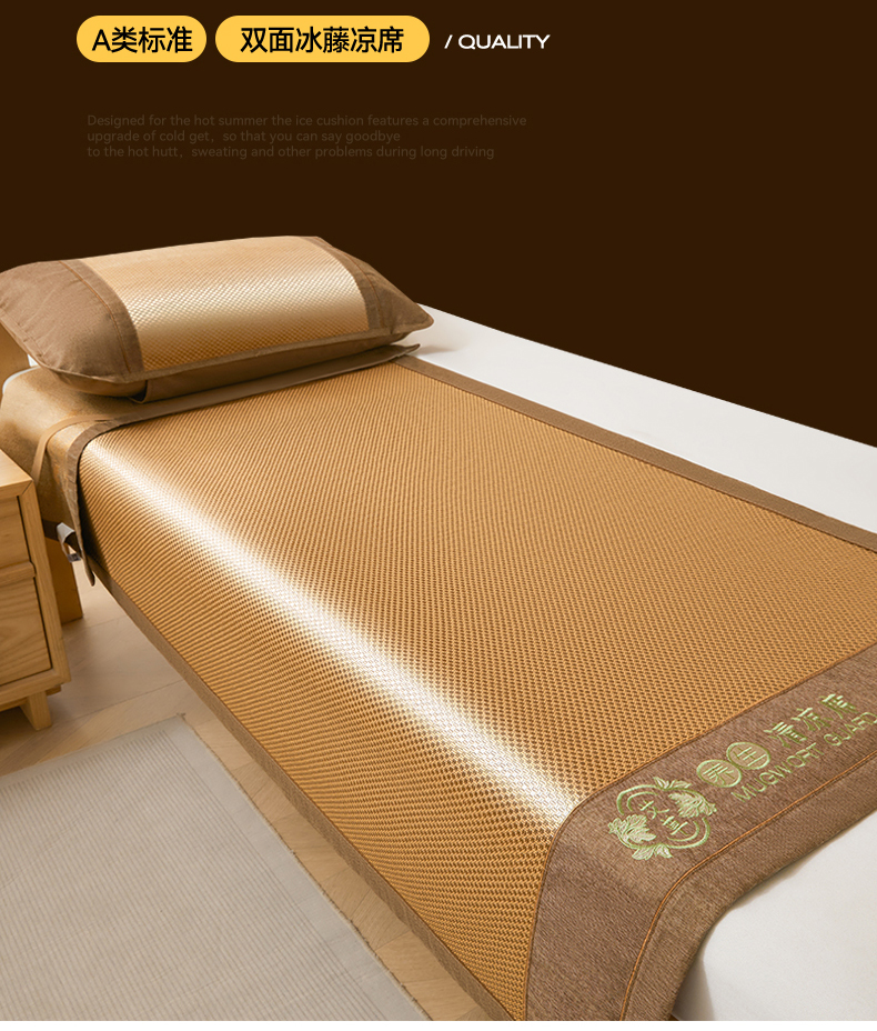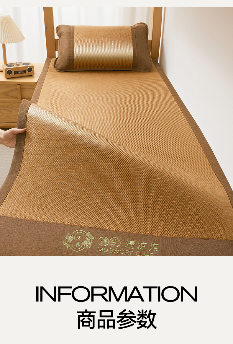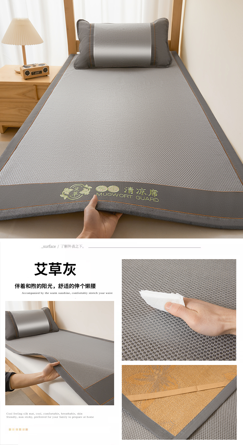 当前位置: 91家纺网 > 商品网购 > 床上用品 > 凉席 > 冰丝席 > (总)绒艺席业 2026新款A类双面冰藤绣花款学生凉席-艾草