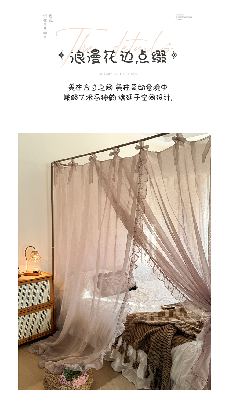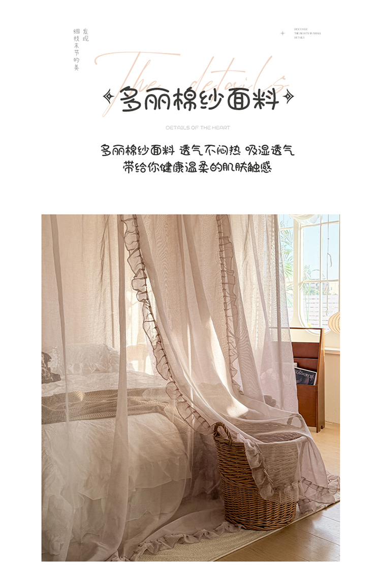 当前位置: 91家纺网 > 商品网购 > 床上用品 > 蚊帐 > 宫廷蚊帐 > 都市缘蚊帐 2026新款浪漫905多丽棉纱落地宫廷蚊帐 摩卡
