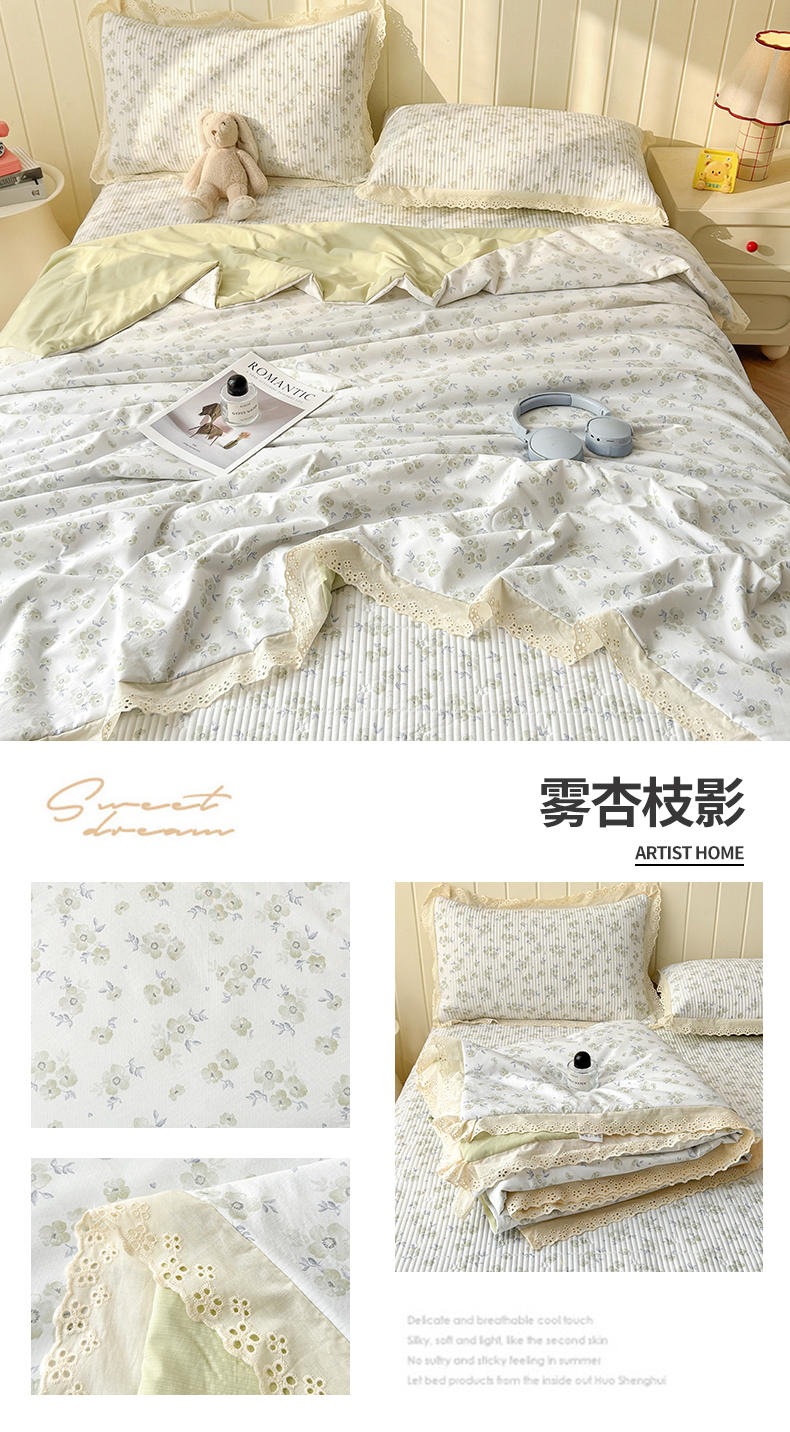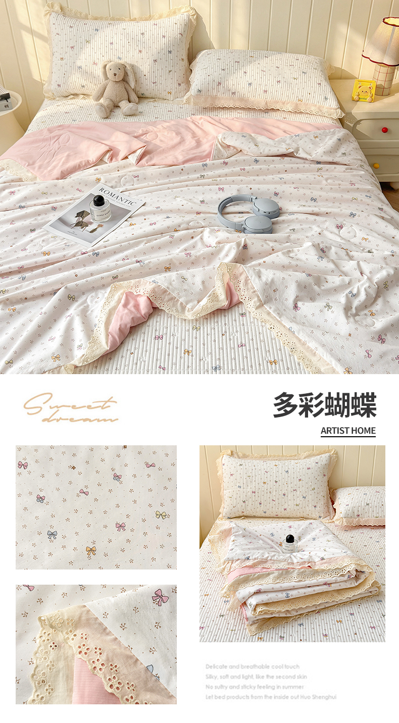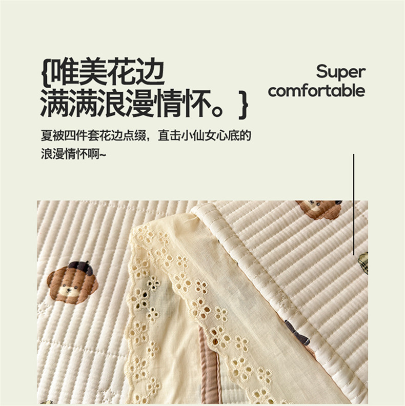雯豆家纺 2026春夏新款A类凉感花边床盖夏被夏凉被空调被四件套 彩色小熊