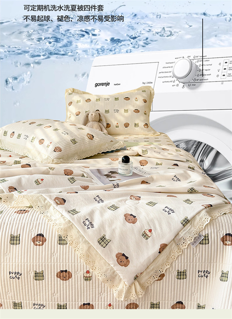 当前位置: 91家纺网 > 商品网购 > 被子 > 夏被 > 雯豆家纺 2026春夏新款A类凉感花边床盖夏被夏凉被空调被四件套 彩色小熊