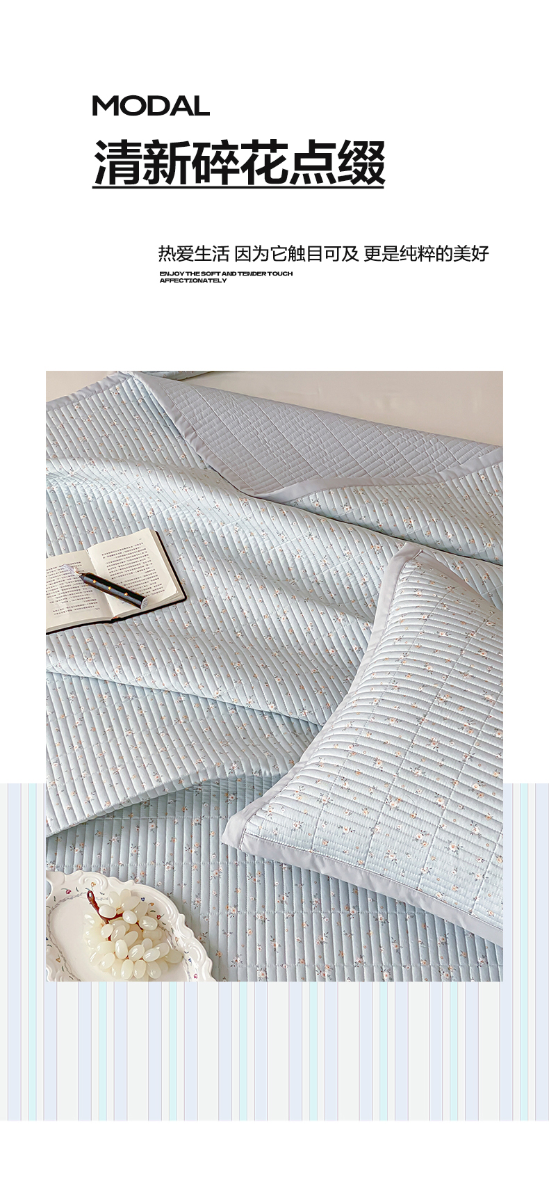 黛舒家居 2026年春夏款纱洗莫代尔夹棉单床单床单单件床单三件套 蓝屿花间