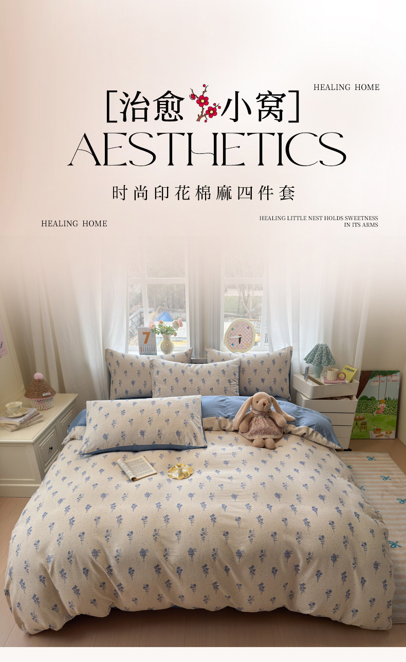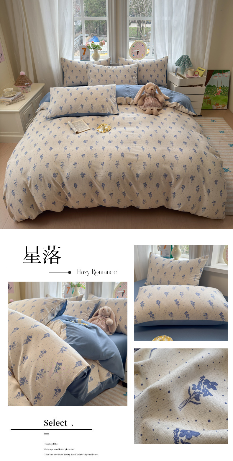 当前位置: 91家纺网 > 商品网购 > 床品套件 > 四件套 > 全棉普通四件套 > 如意朵 2026新款全棉棉麻印花四件套 星落