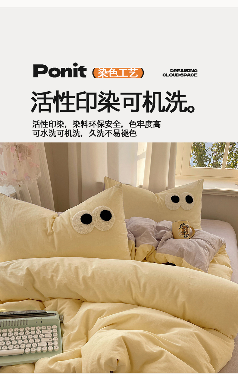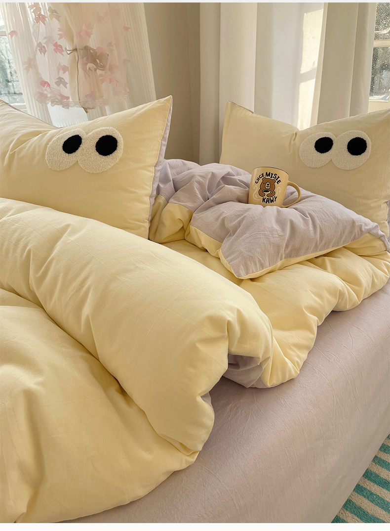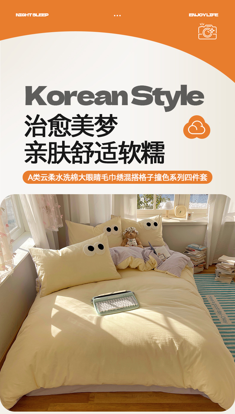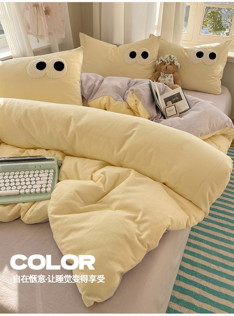 当前位置: 91家纺网 > 商品网购 > 床品套件 > 四件套 > 毛巾绣四件套 > 桃心家居 2026新款A类亲肤舒适软糯云柔水洗棉大眼睛毛巾绣混搭格子撞色系列四件套 云柔水洗棉-大眼奶油葡萄