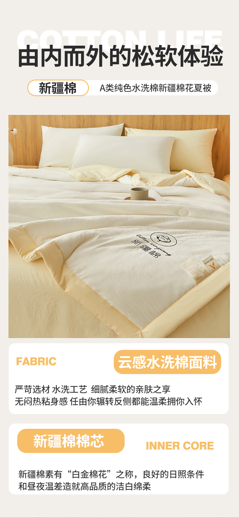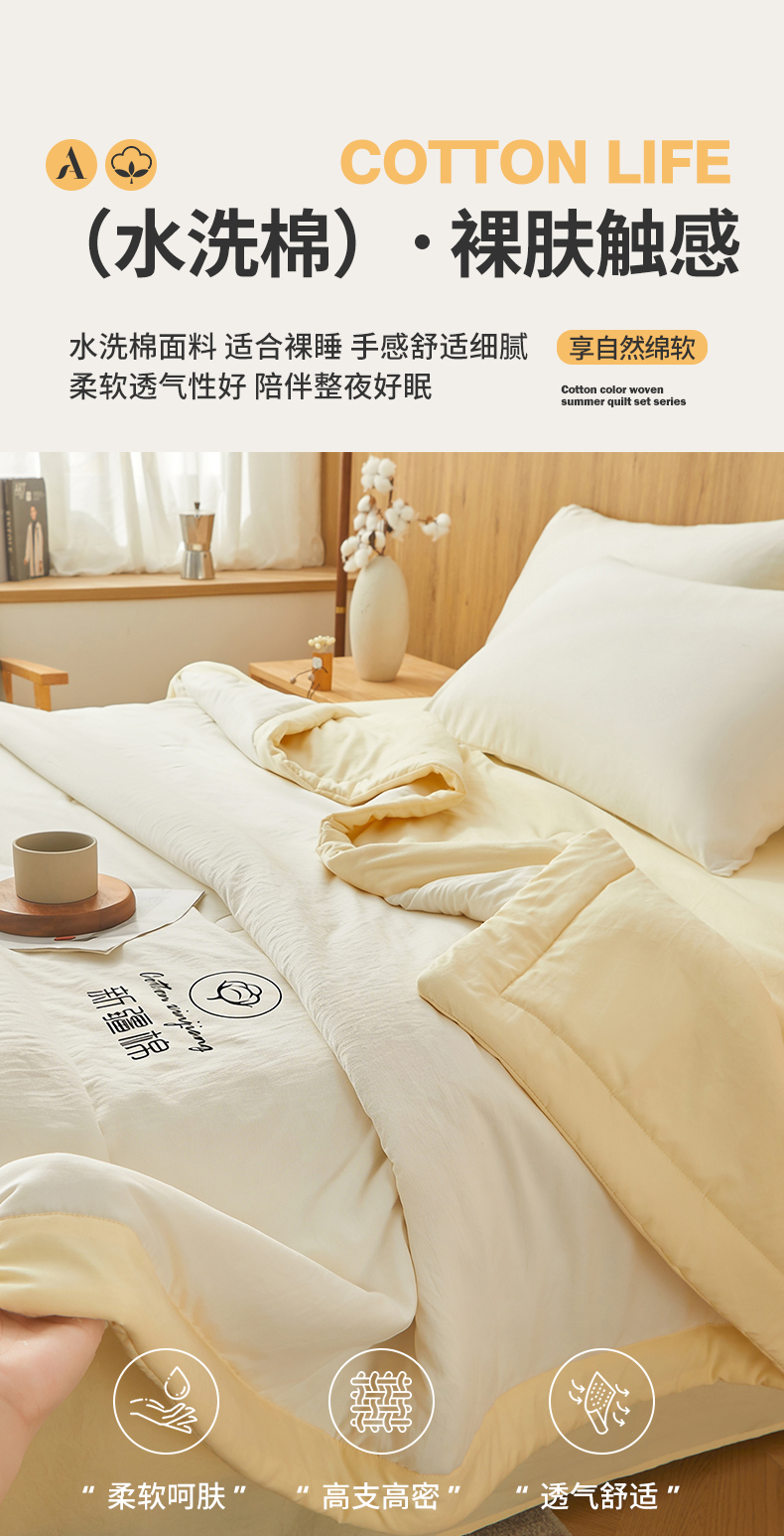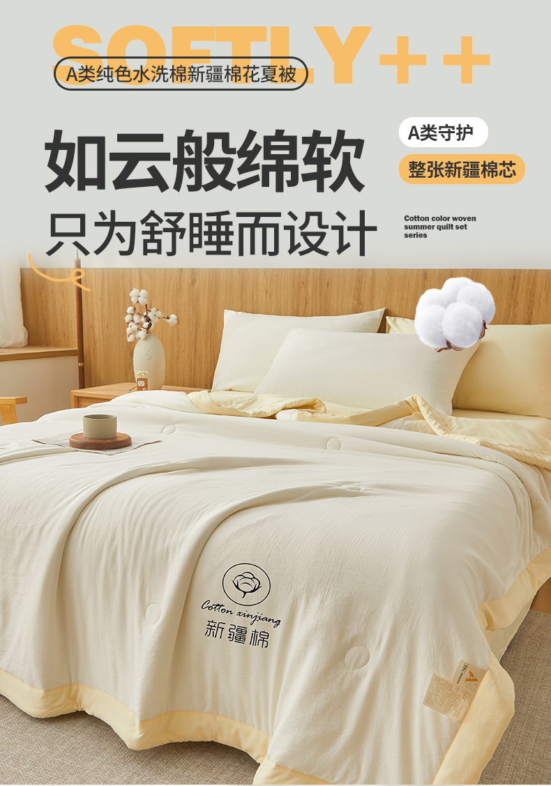 商品名称:晓时候 2026春夏新款纯色水洗棉双拼夏被新疆棉花被夏凉被空调被被子被芯-素夏 素夏-白黄