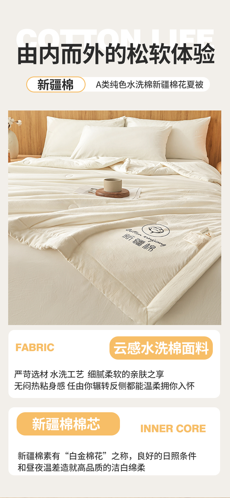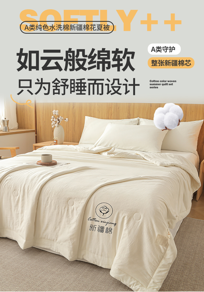 商品名称:晓时候 2026春夏新款纯色水洗棉双拼夏被新疆棉花被夏凉被空调被被子被芯-素夏 素夏-奶白