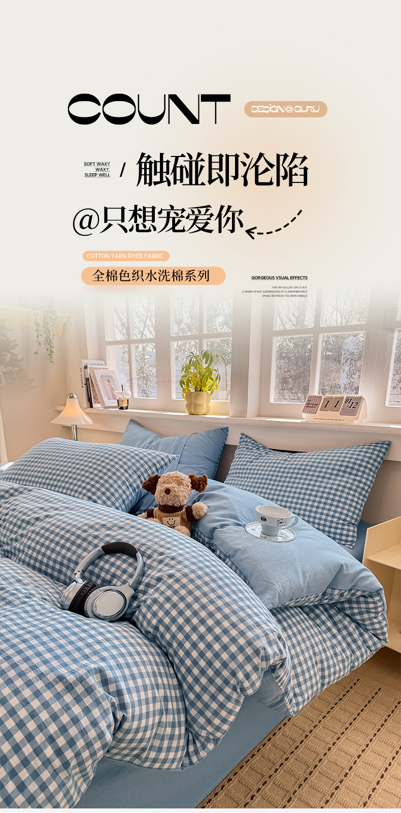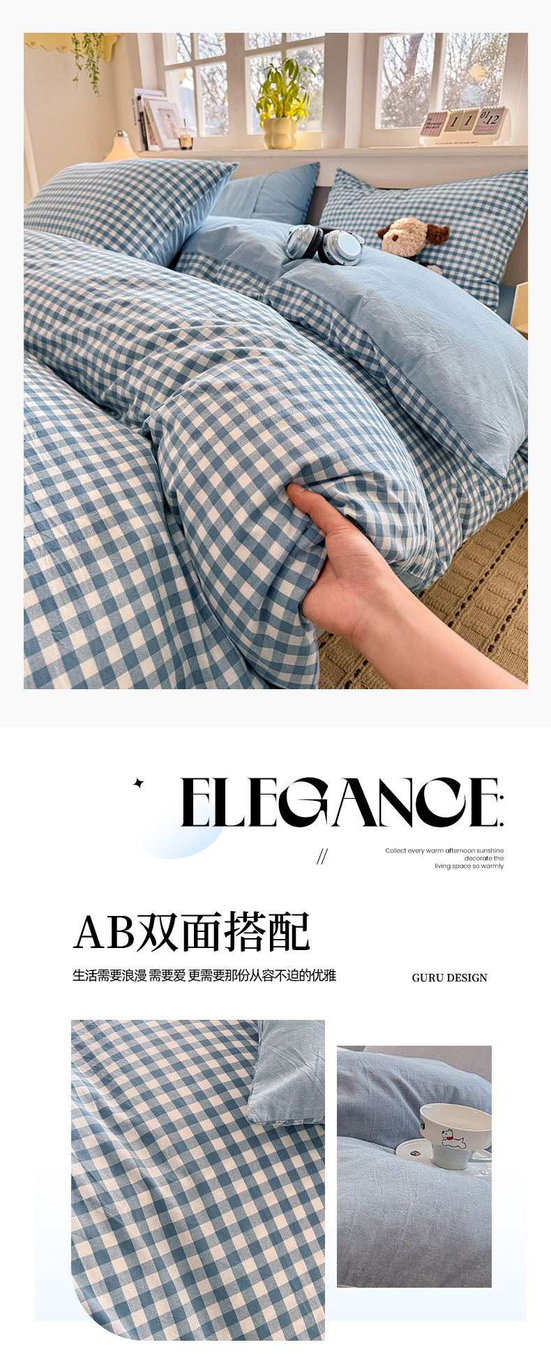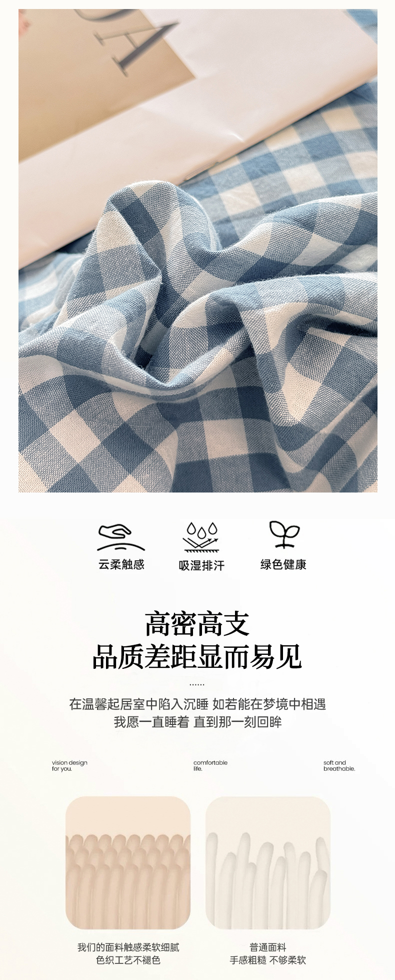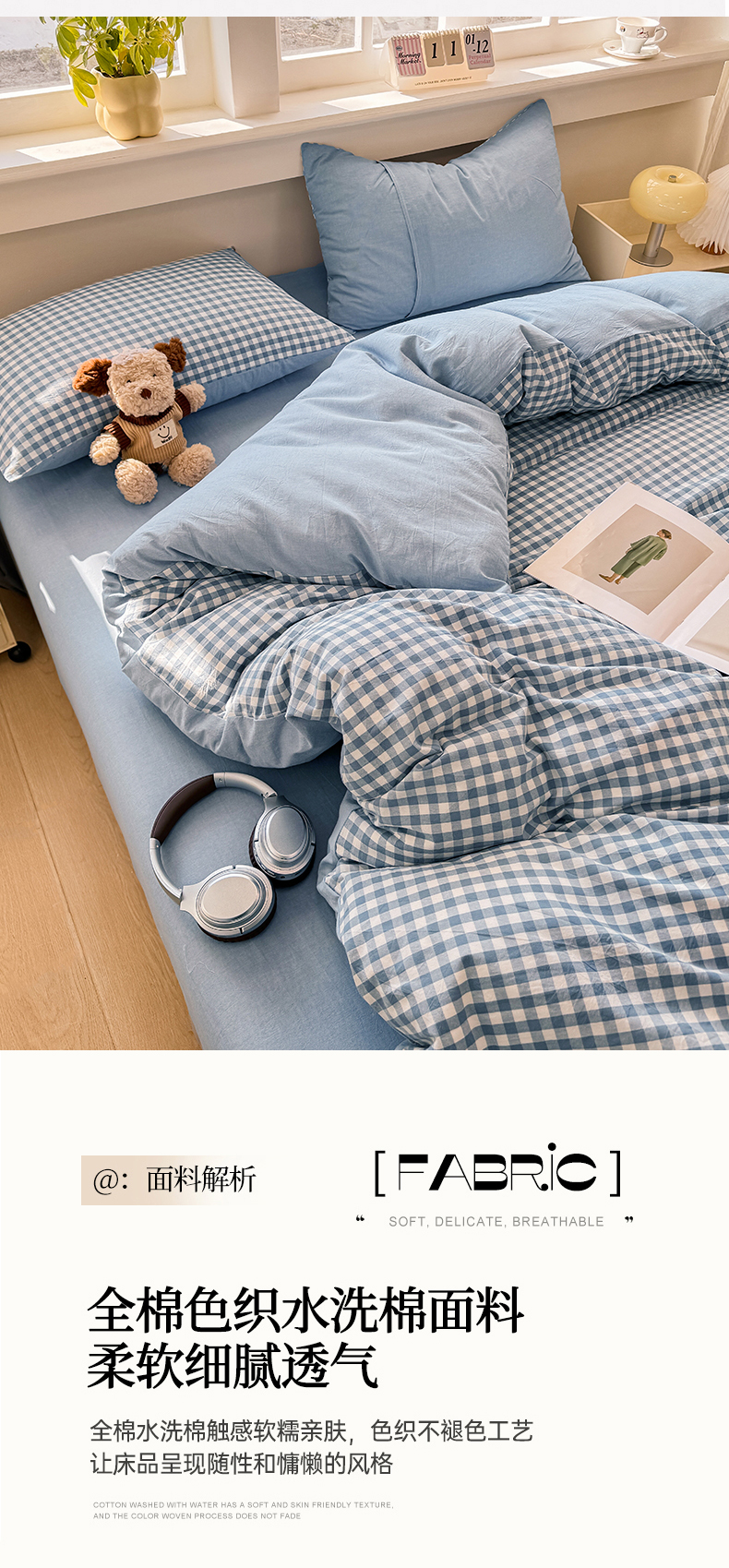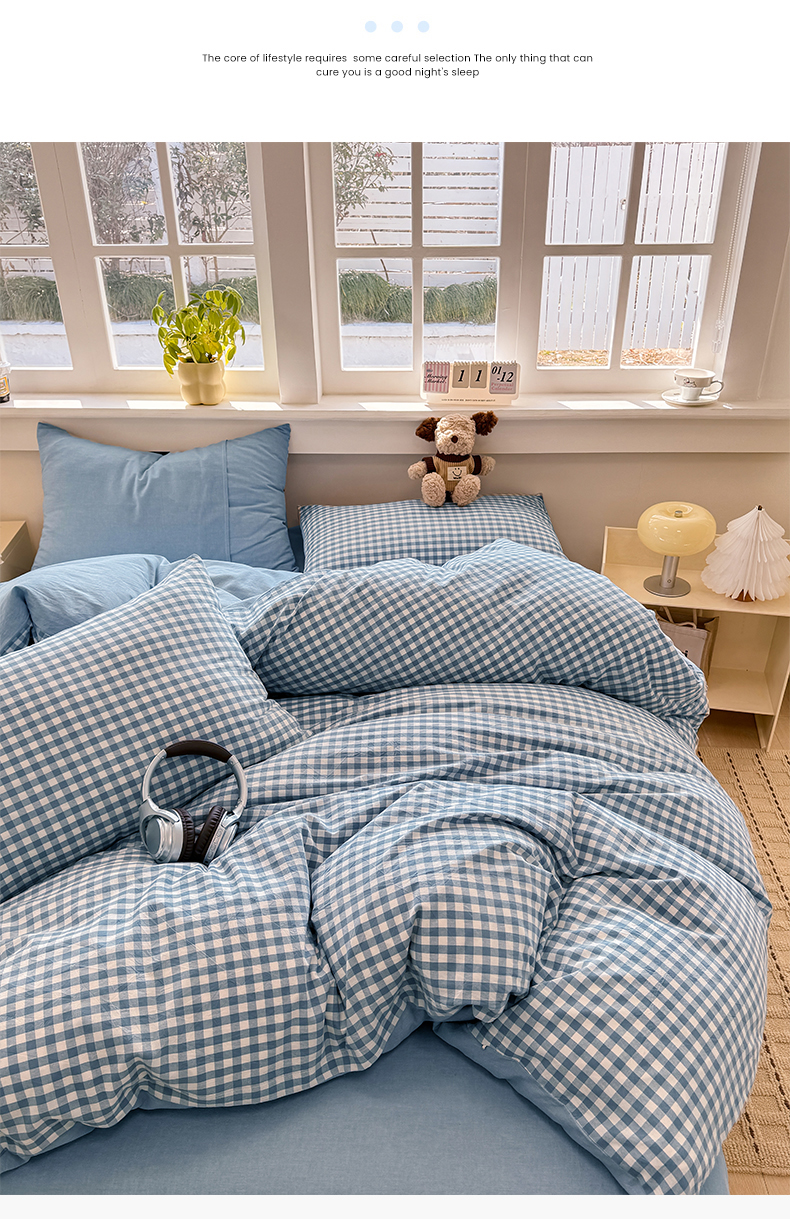 当前位置: 91家纺网 > 商品网购 > 床品套件 > 四件套 > 全棉普通四件套 > 梦依依 2026新款全棉色织水洗棉拉链款四件套 蓝小格
