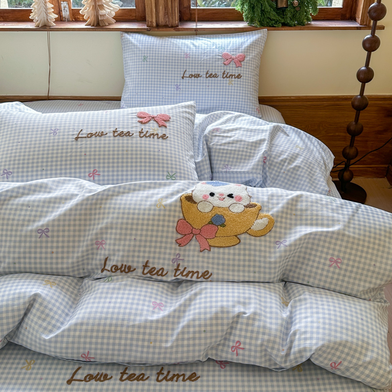 (总)布柔 2026春夏新款13070纯棉全棉印花绣花床笠三件套四件套,曲奇粉,曲奇黄,曲奇蓝