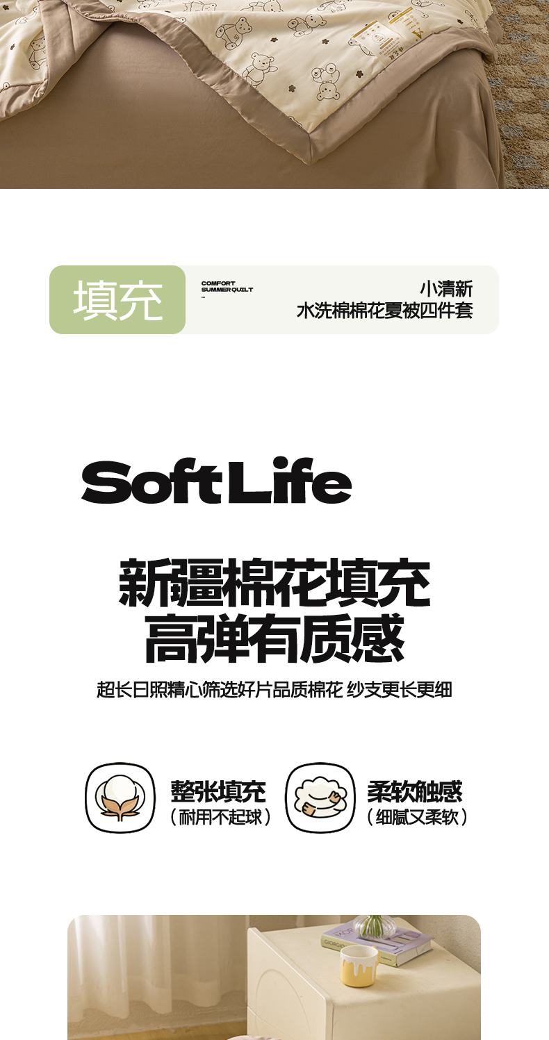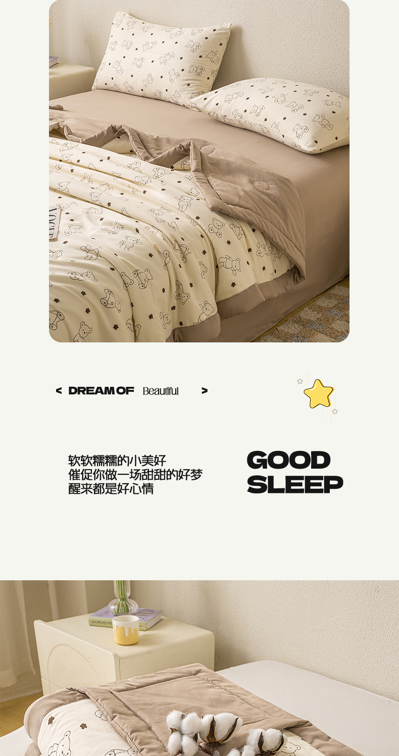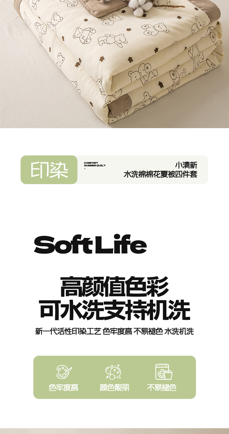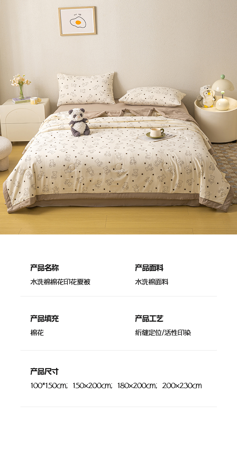 商品名称:爱屋及屋 2026新款水洗棉印花夏被夏凉被被子被芯 小熊博士