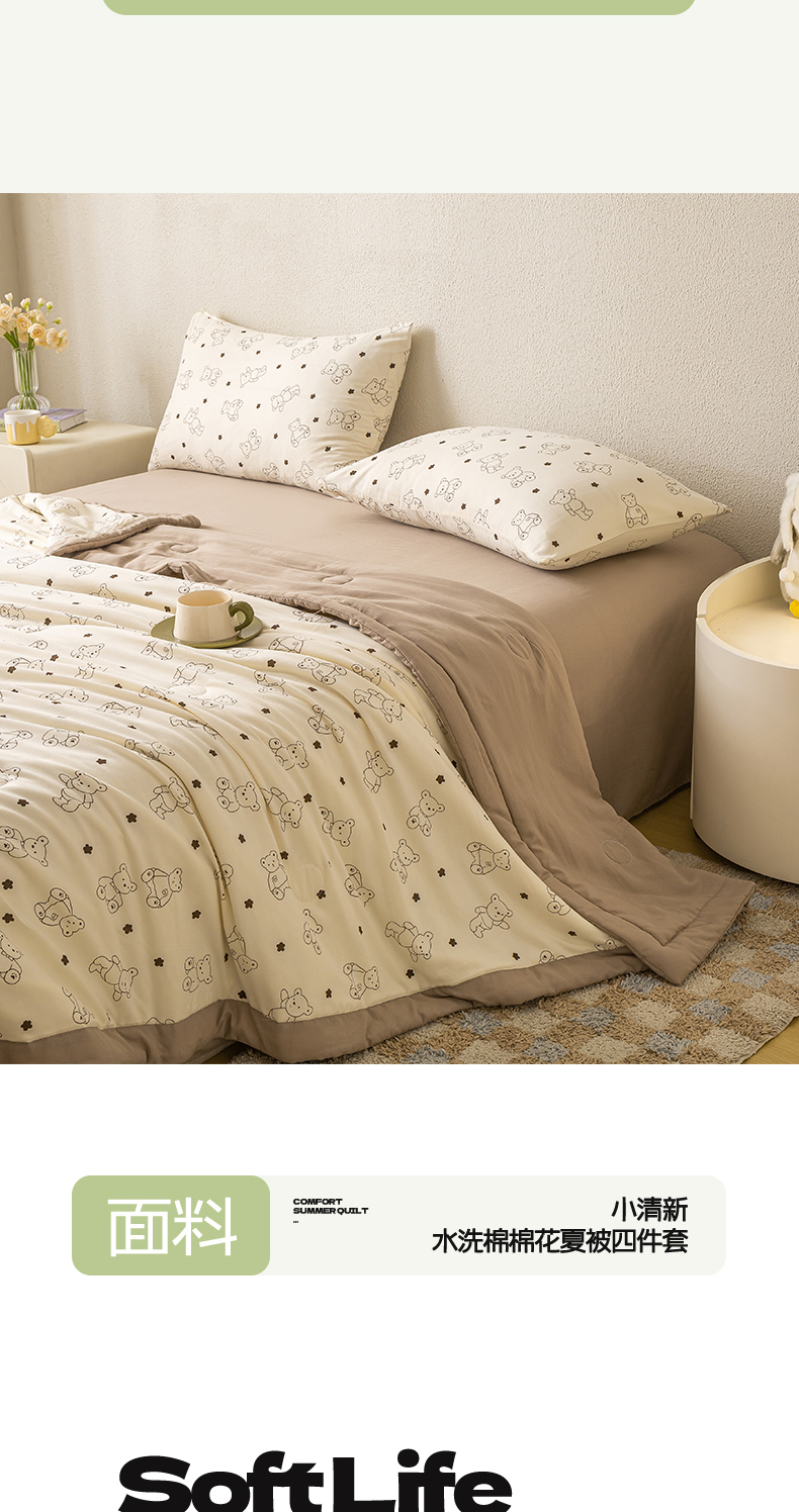 爱屋及屋 2026新款水洗棉印花夏被夏凉被被子被芯 小熊博士