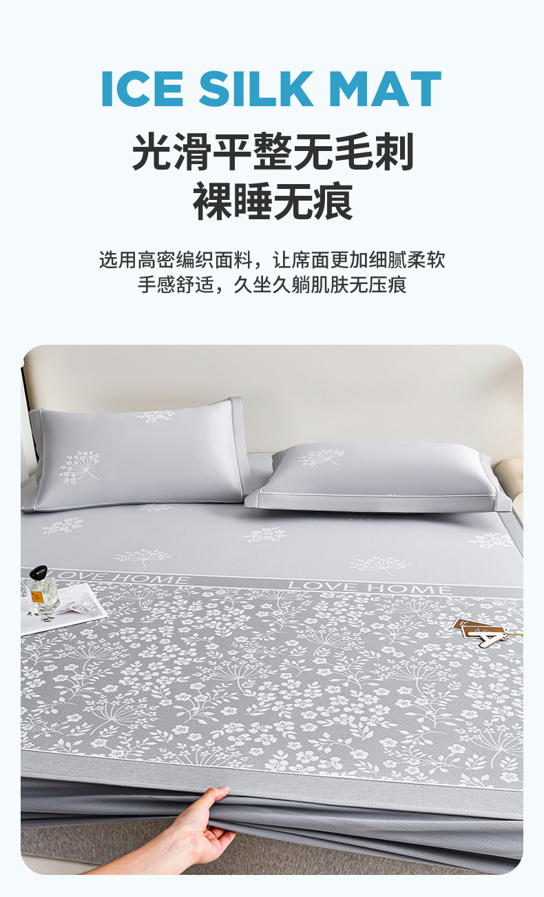 (总)小牛席业 2026春夏新款【实拍风格】PE凉感小碎花提花冰丝席,灰色,粉色,蓝色,抹茶,香槟
