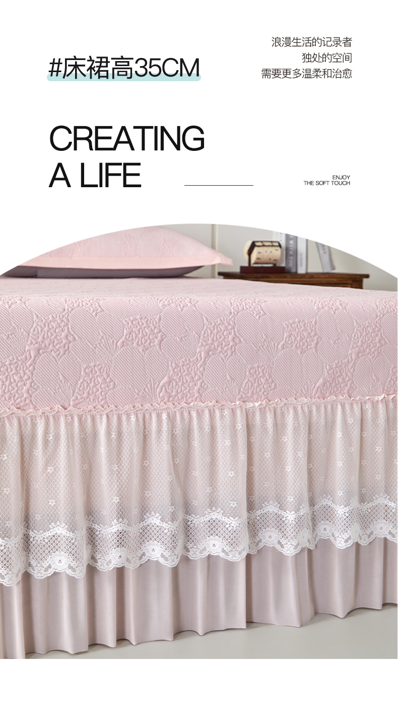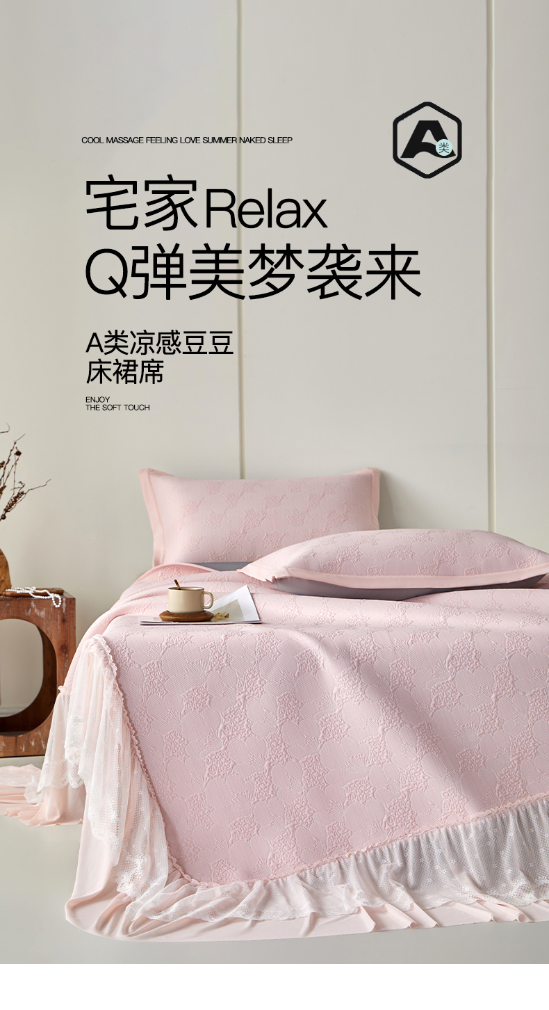 商品名称:瑞禾家纺 2026新款A类凉感豆豆床裙款凉席三件套-系列七 樱粉玫瑰