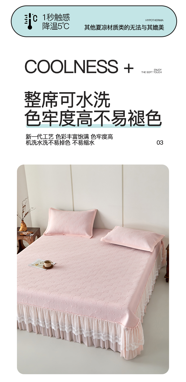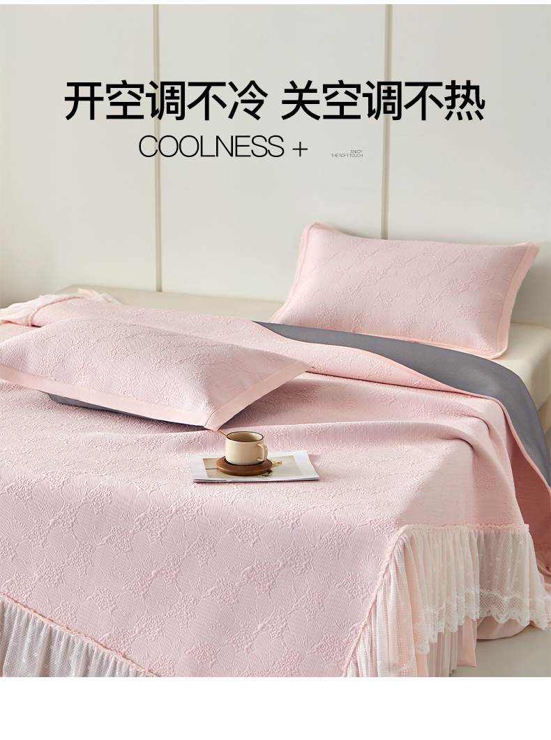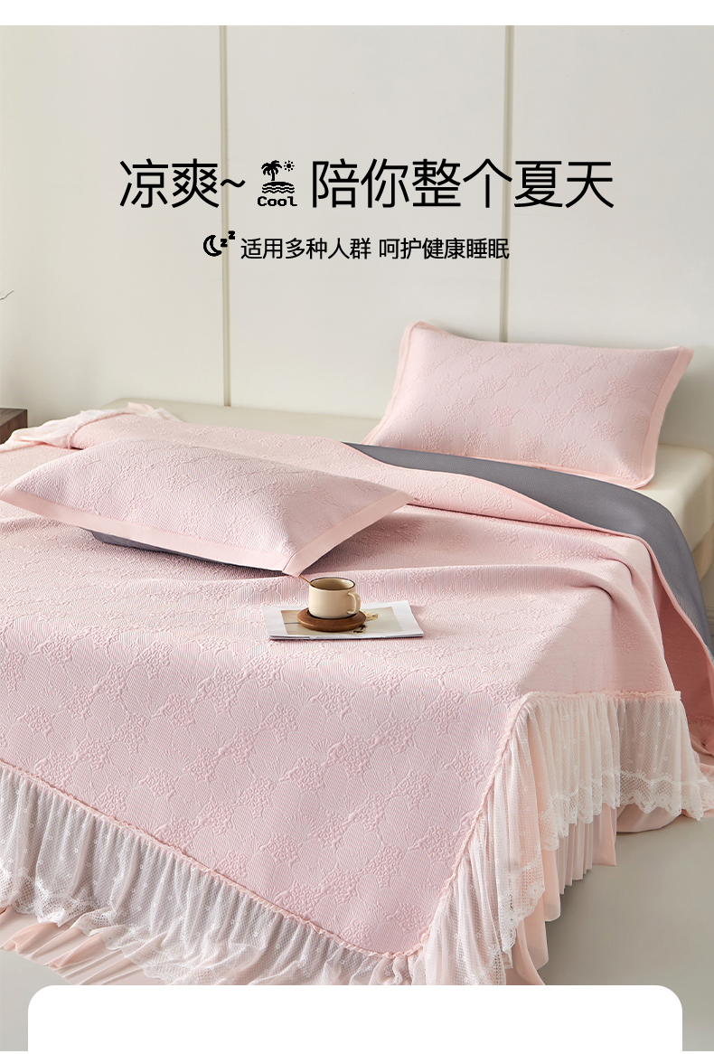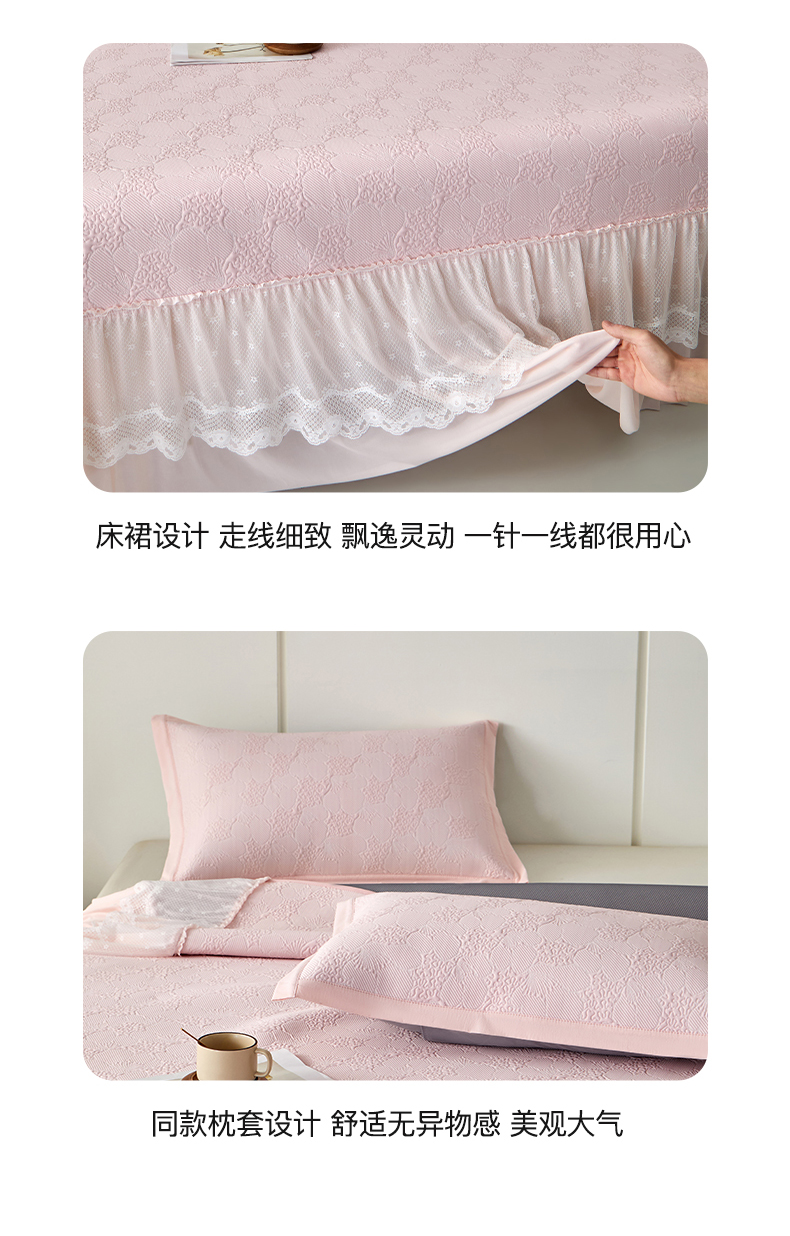 瑞禾家纺 2026新款A类凉感豆豆床裙款凉席三件套-系列七 樱粉玫瑰