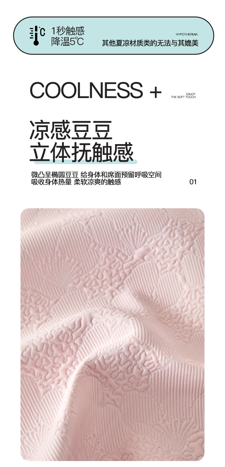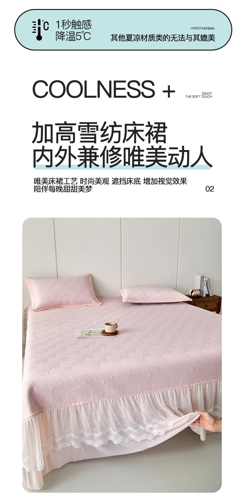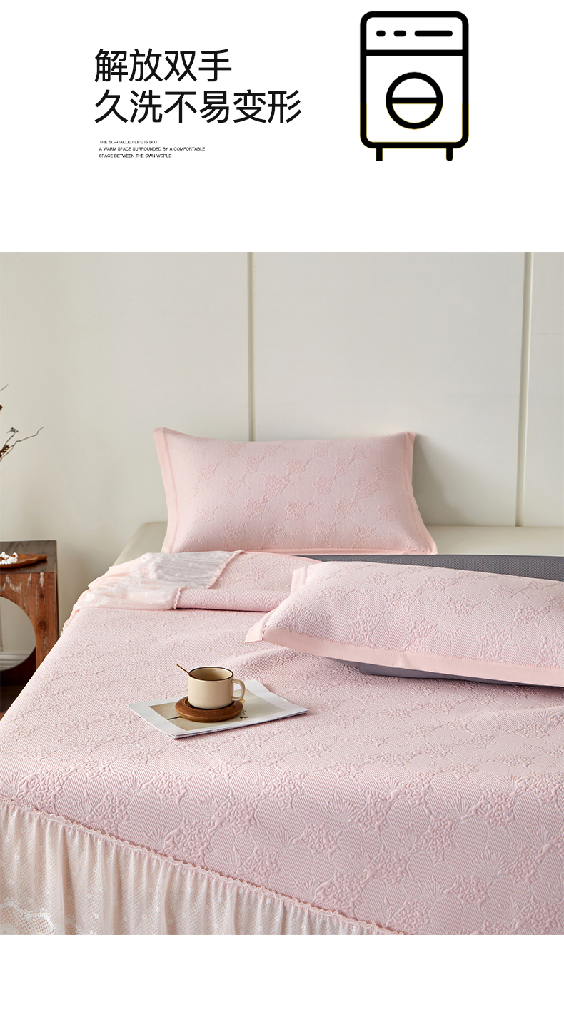 瑞禾家纺 2026新款A类凉感豆豆床裙款凉席三件套-系列七 樱粉玫瑰