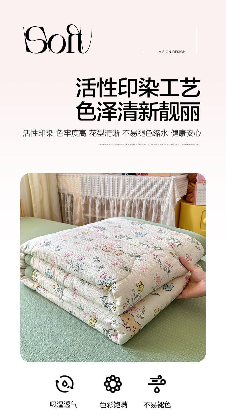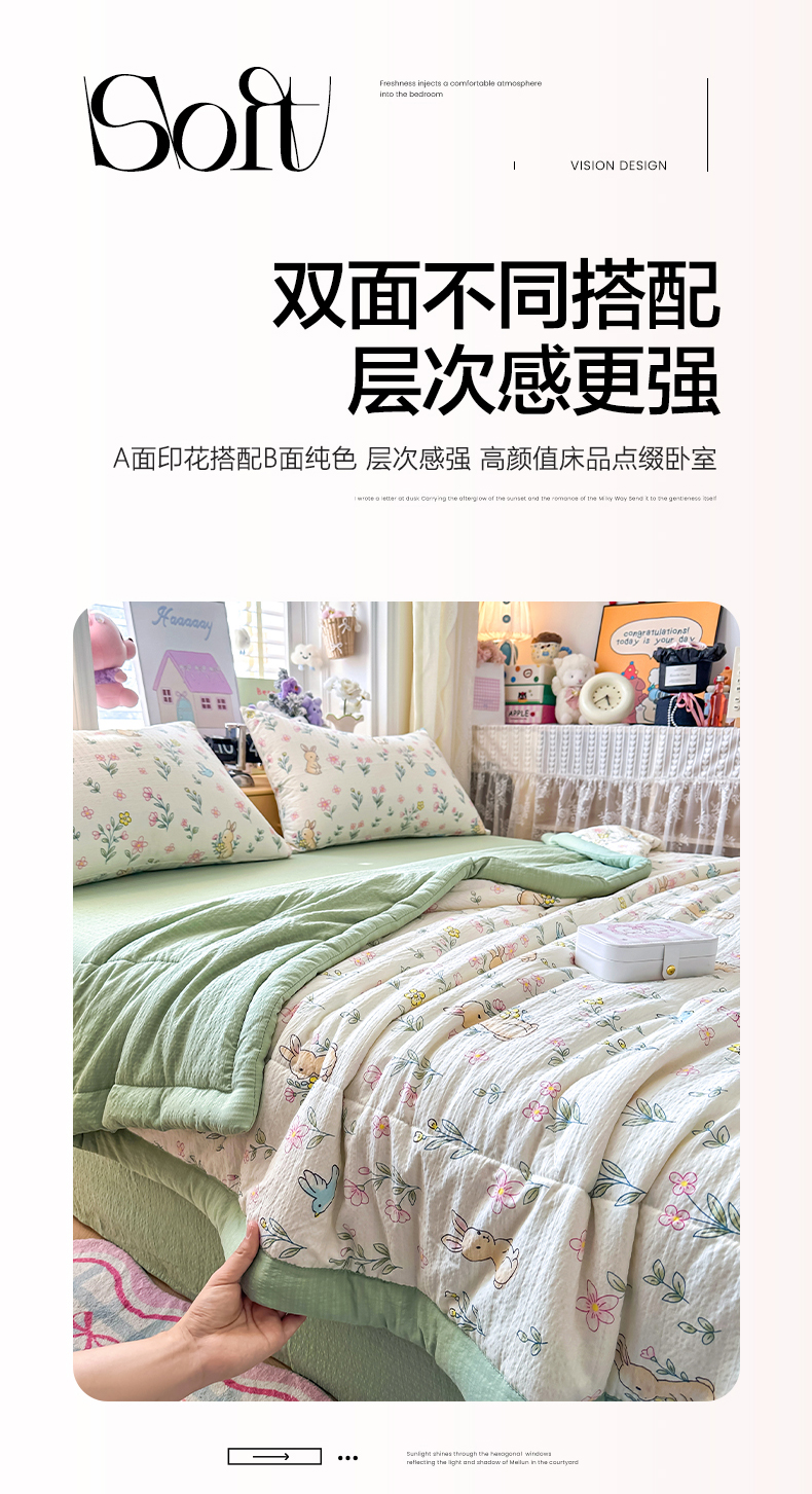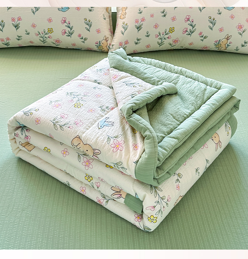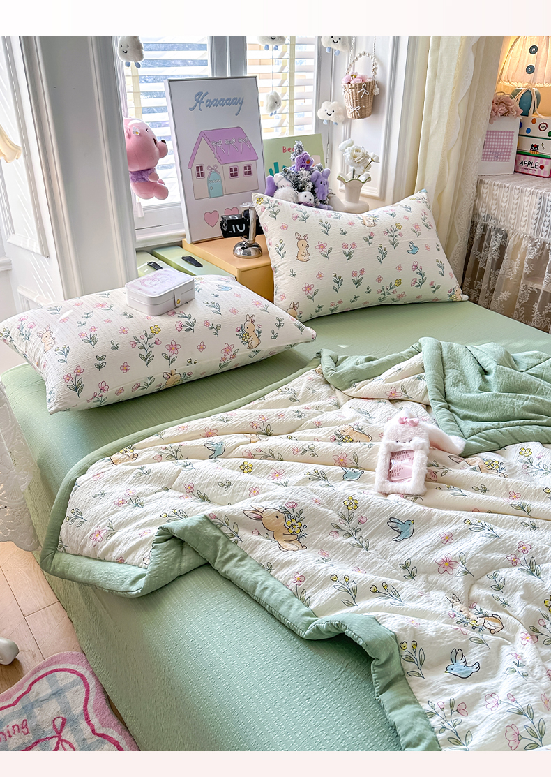 当前位置: 91家纺网 > 商品网购 > 床品套件 > 四件套 > 夏被四件套 > 卡斯诺家纺馆 2026新款皱皱棉双层纱夏被四件套下载文件包含买家秀 花园小兔