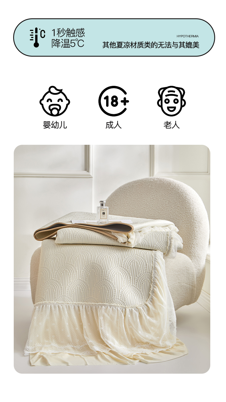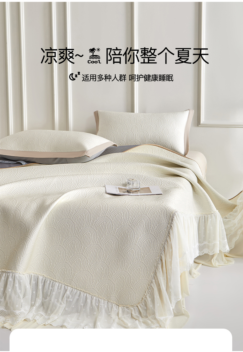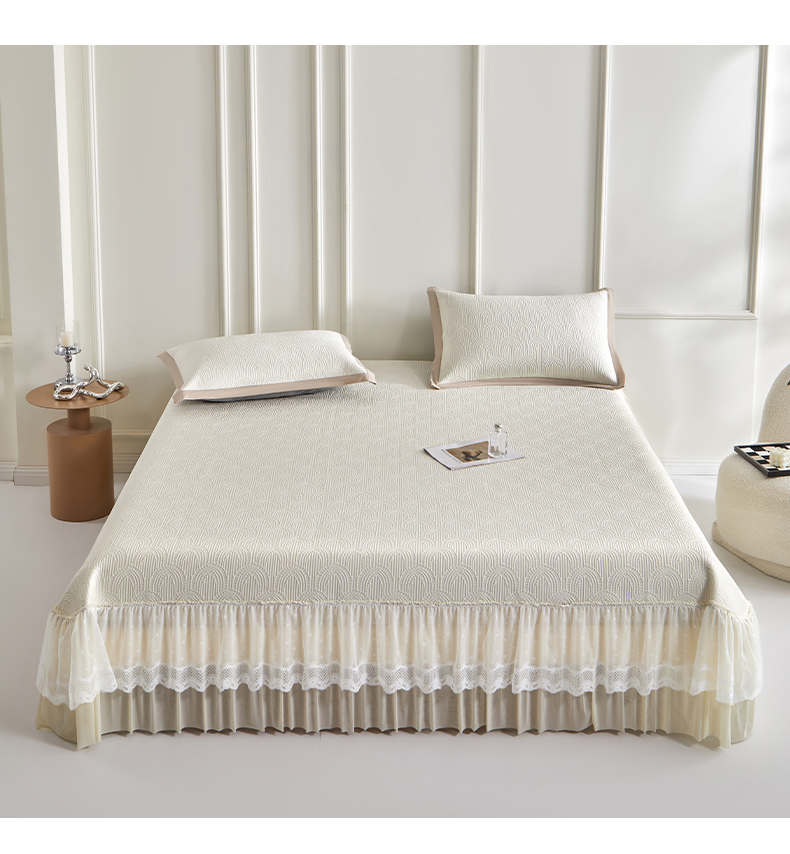 瑞禾家纺 2026新款A类凉感豆豆床裙款凉席三件套-系列三 浅粉浪影