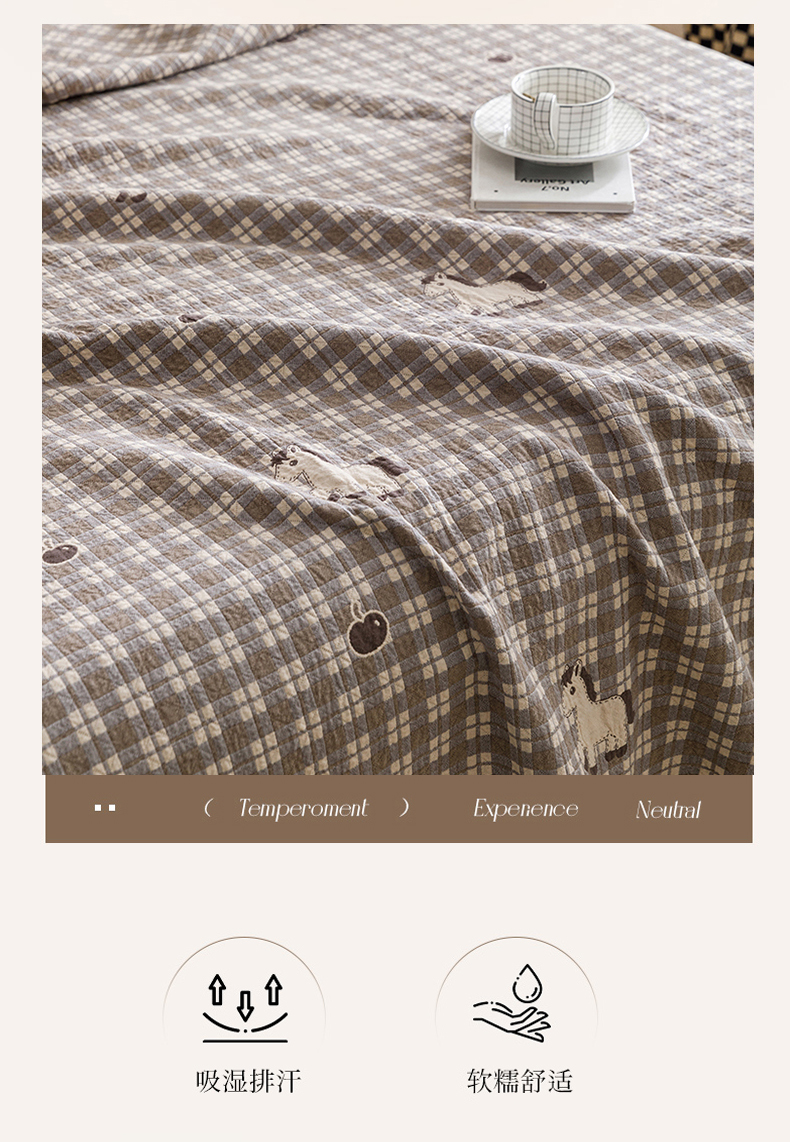 悦然毛巾被 2026春夏新款水洗色织提花全棉纯棉纱布毛巾被盖毯休闲夏被毛毯 深格萌马