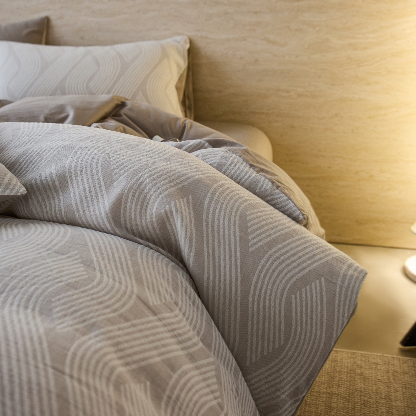 当前位置: 91家纺网 > 商品网购 > 床品套件 > 四件套 > 全棉普通四件套 > 安莱生活 2026年新品水洗棉全棉纯棉色织提花系列四件套 溪言-浅灰