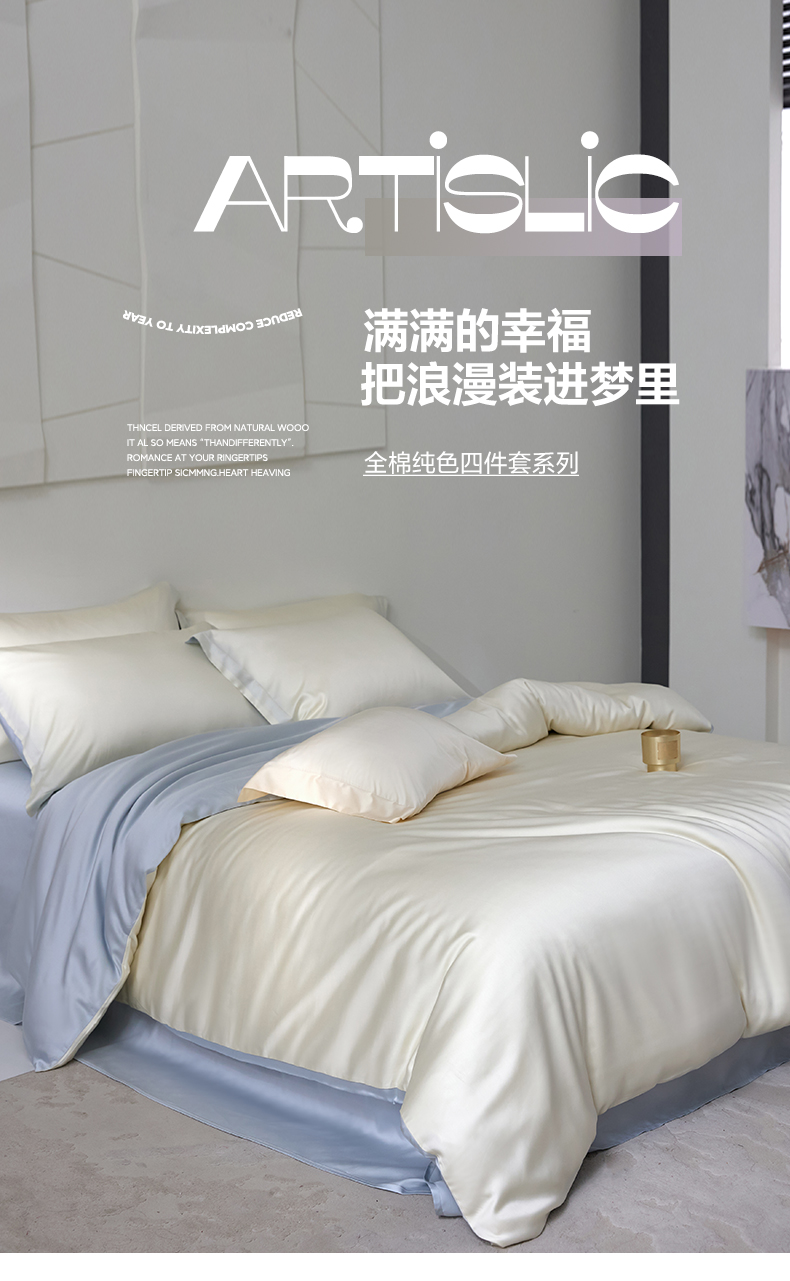 (总)花愿(原花纪) 2026春夏新款全棉纯棉纯色双拼四件套-安娜