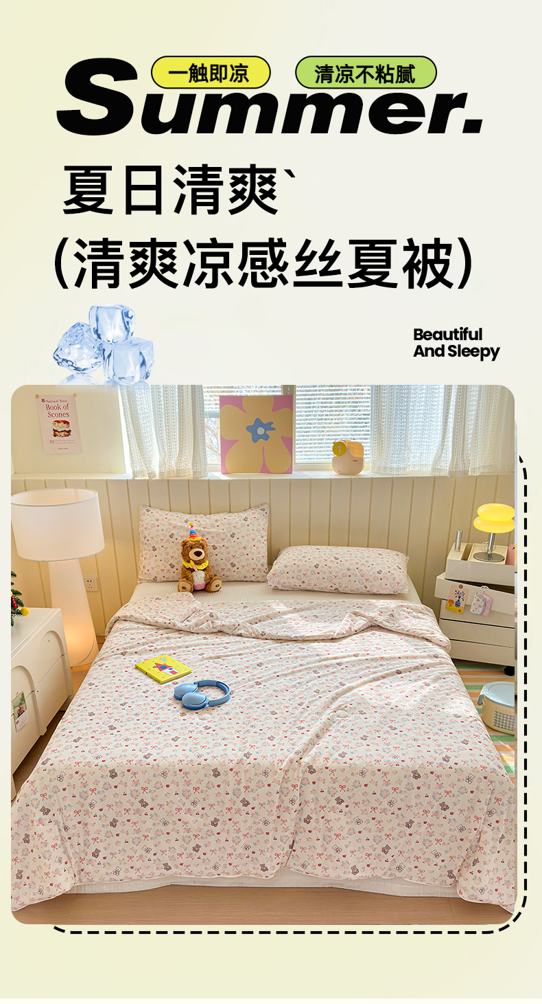 寐居家纺 2026新款清爽凉感丝夏被夏凉被空调被 软熊蜜语