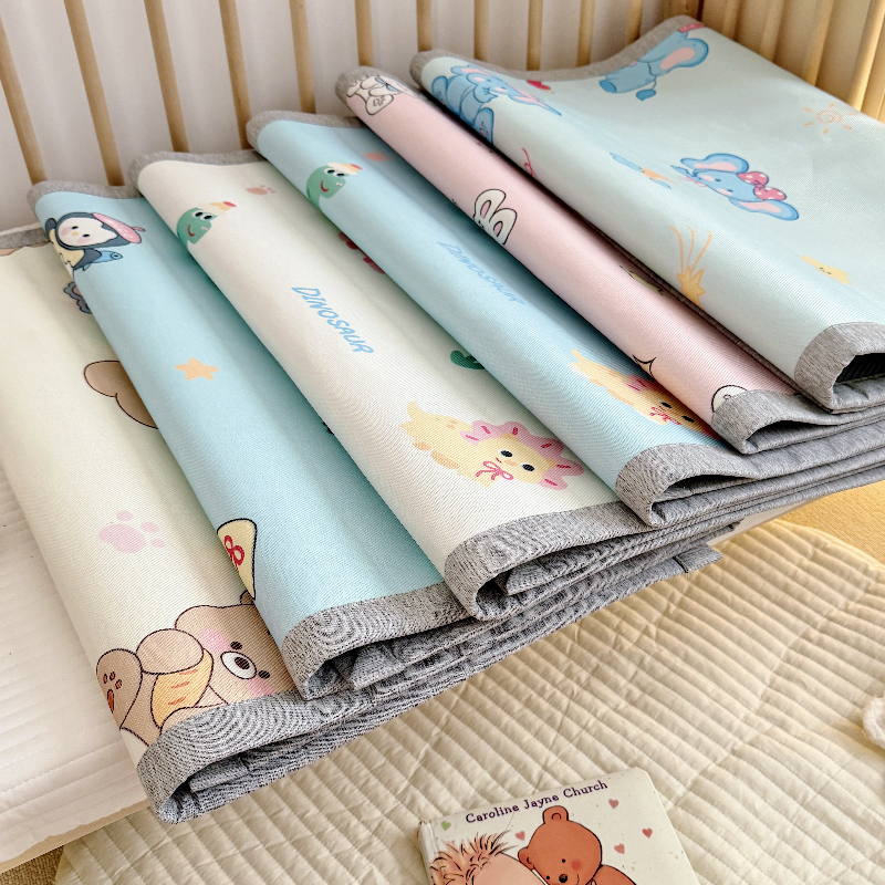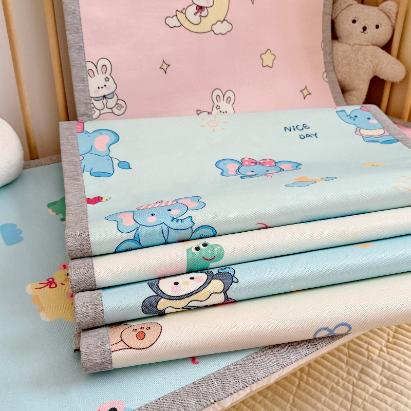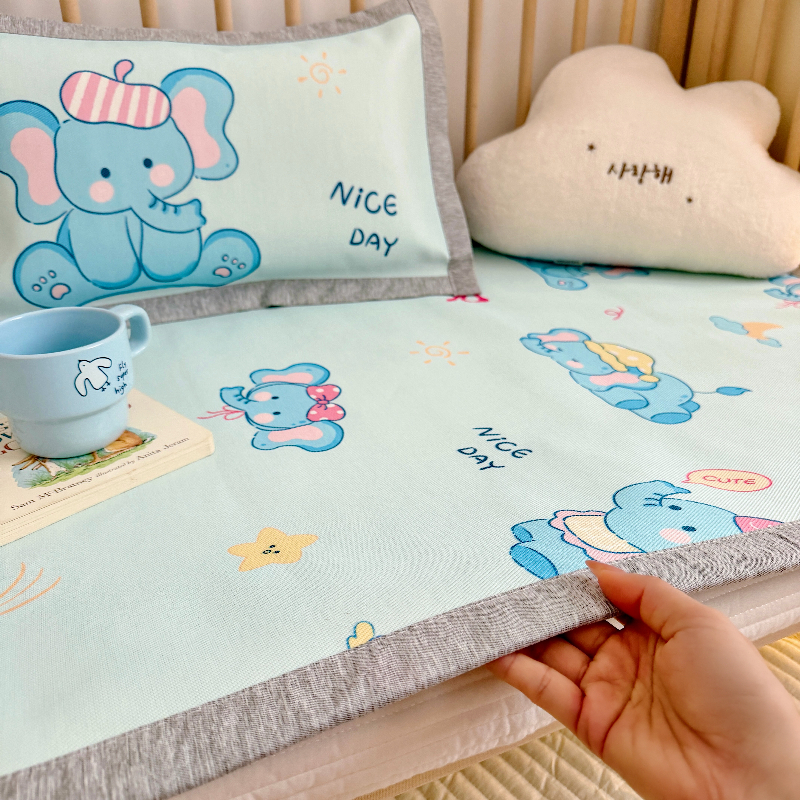(总)萌宝家纺 2026新款夏季凉感儿童冰丝枕套双面冰藤枕(新增花型),蓝色企鹅,帽子恐龙,面包熊,睡觉小象,月亮兔