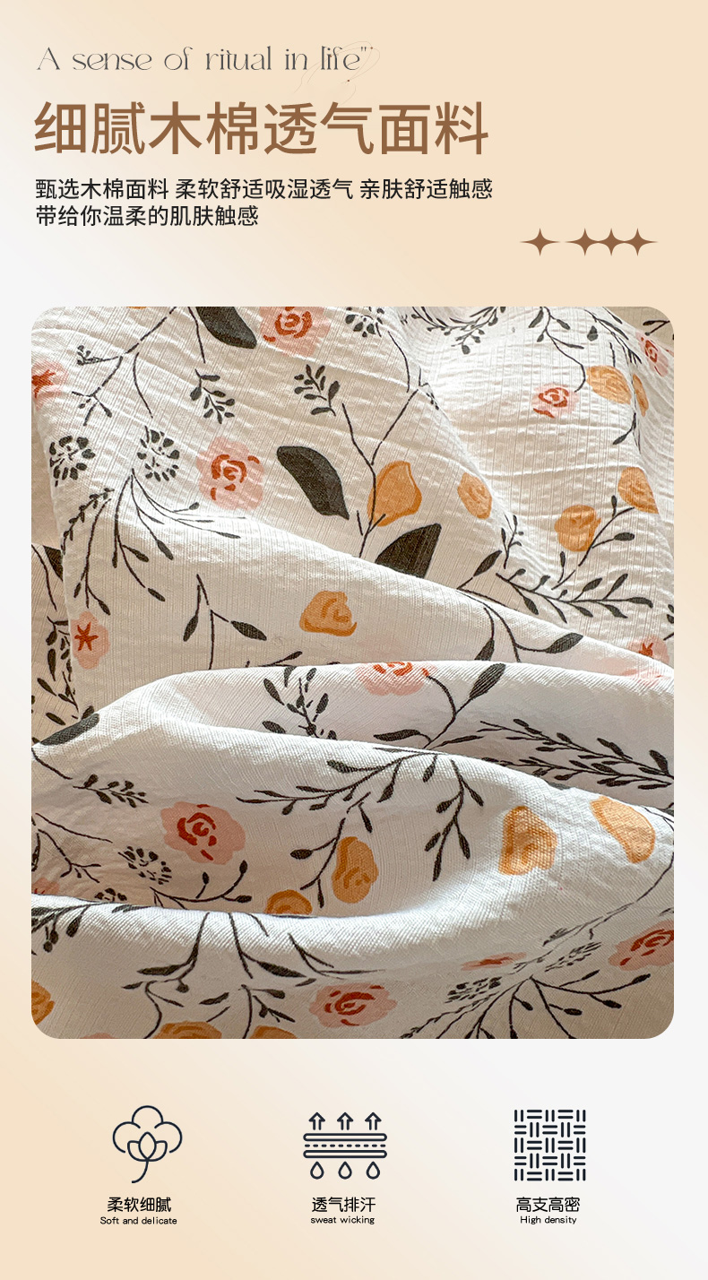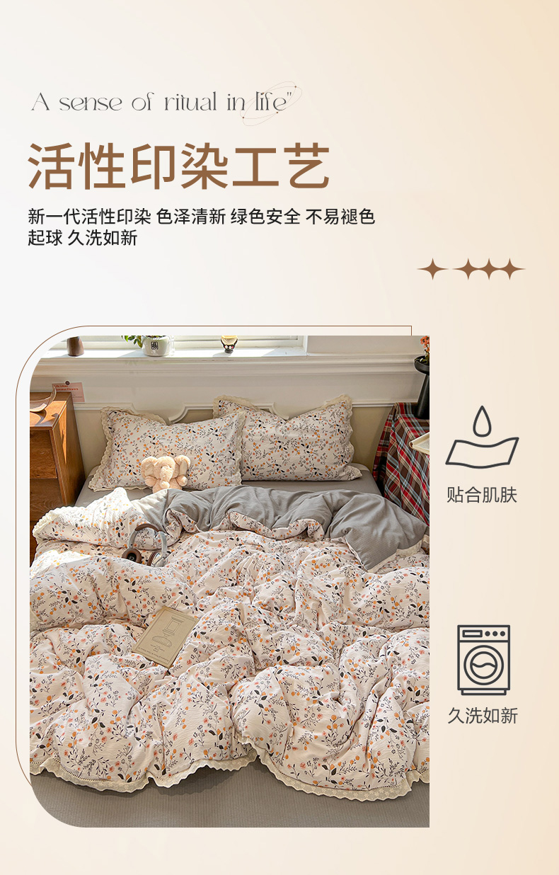 • 91家纺网 家纺一手货源 找家纺 繁花家居 2026镂空花边系列夏被夏凉被空调被高克重木棉泡芙棉软糯亲肤四件套学生三件套 咖香暖眠