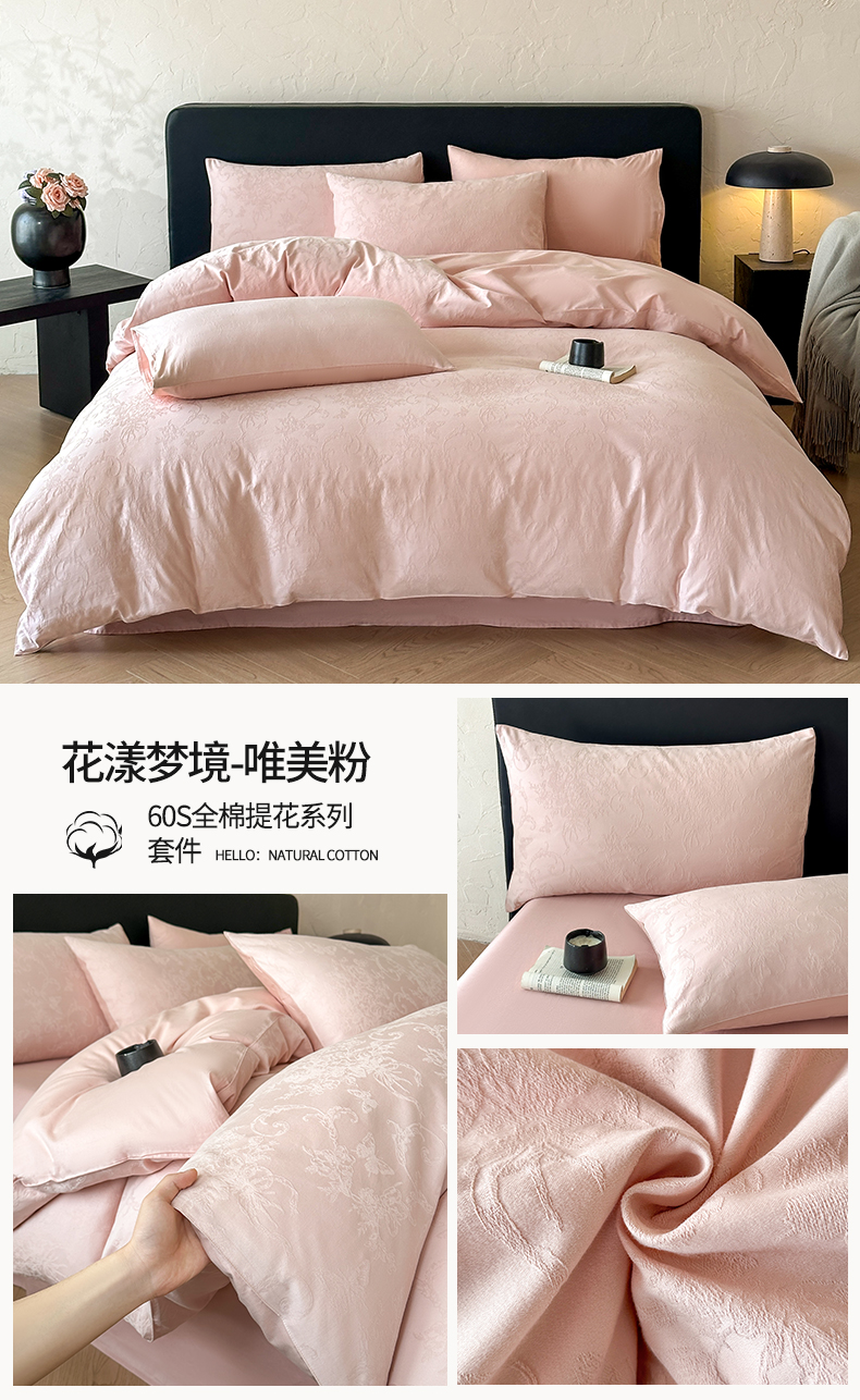 当前位置: 91家纺网 > 商品网购 > 床品套件 > 四件套 > 全棉普通四件套 > 优悦生活馆 2026新款60s全棉提花四件套 浪漫情缘-唯美粉
