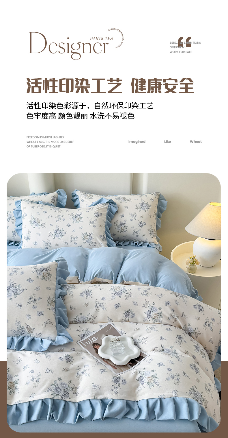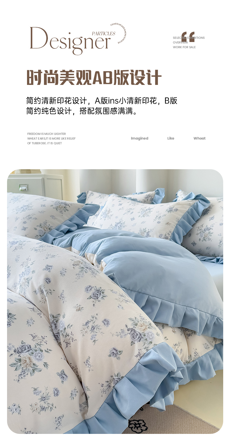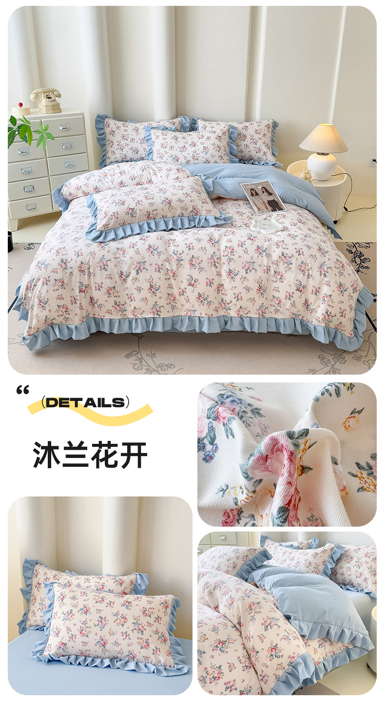 当前位置: 91家纺网 > 商品网购 > 床品套件 > 四件套 > 其它四件套 > 晚爱家纺(原晚安家居) 2026韩版花边四件套 有氧针织双层纱天竺棉超柔小清新四件套 茉莉青提