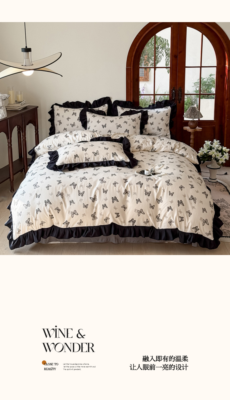 当前位置: 91家纺网 > 商品网购 > 床品套件 > 四件套 > 其它四件套 > 晚爱家纺(原晚安家居) 2026新款法式花边水洗棉四件套赫本风韩版针织云朵棉三件套 法式风-庄园