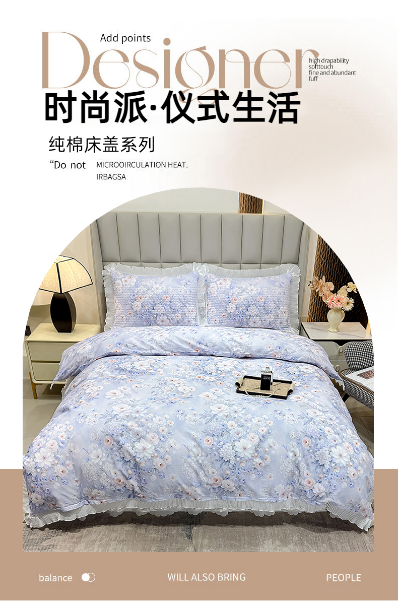 • 91家纺网 家纺一手货源 找家纺 冬然家纺 2026新款数码印花纯棉单床盖床盖单件单品床盖 春天花园