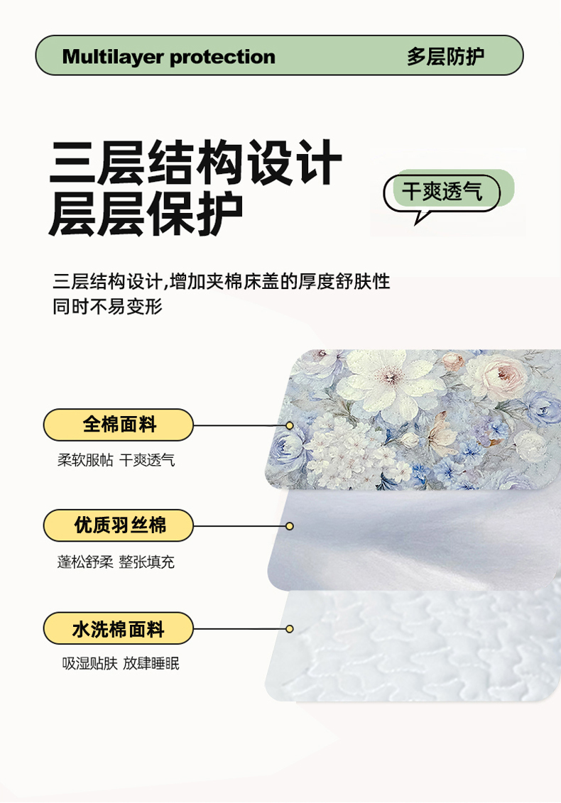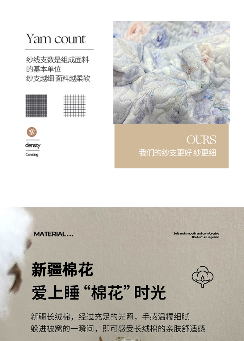 (总)冬然家纺 2025新款纯棉数码印花工艺款单床盖,淡雅清香,国色天香,花海之恋,花影,梦幻花镜,墨雅清风,田园花梦,玉兰花,珍爱花语