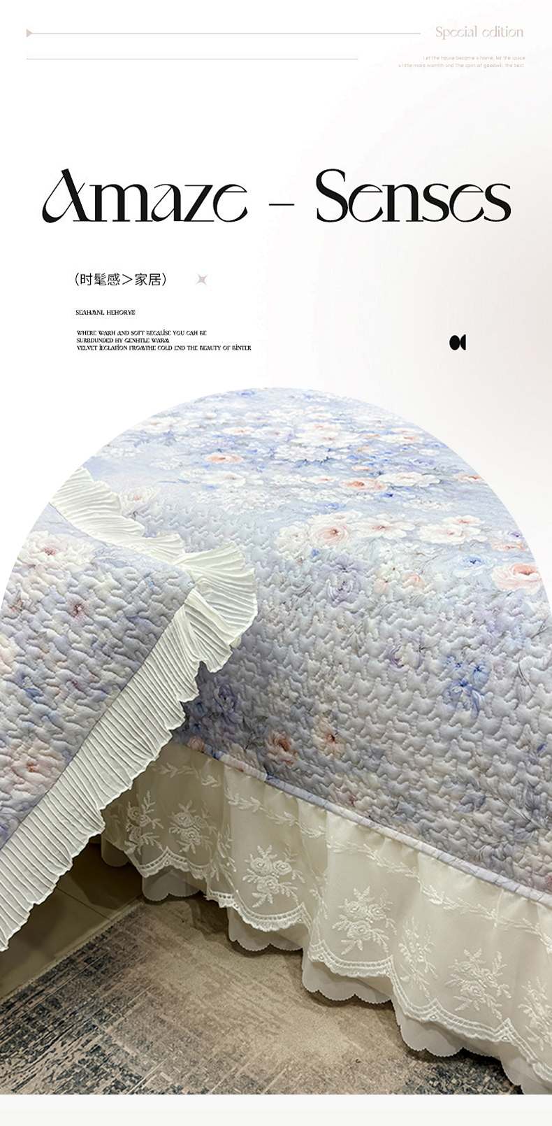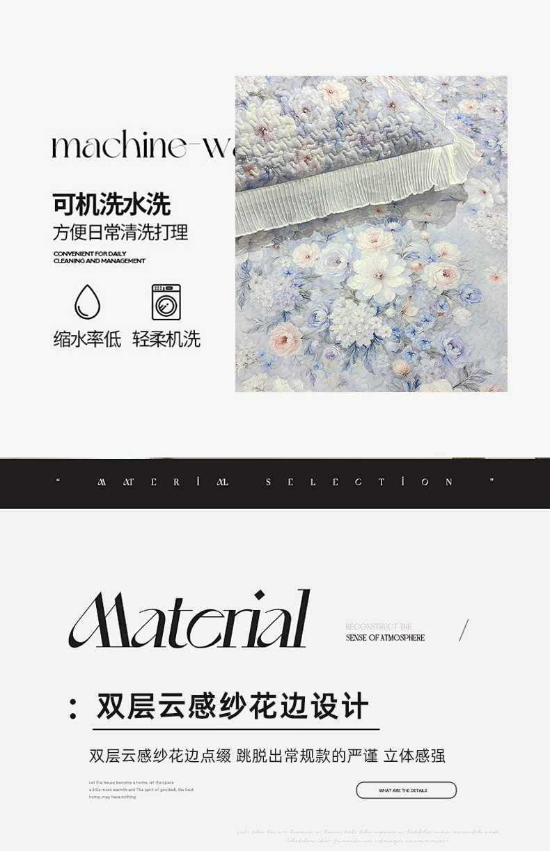 • 91家纺网 家纺一手货源 找家纺 (总)冬然家纺 2025新款高克重牛奶绒蕾丝花边床盖系列,水墨茶花,朵朵花香,肌理纹-灰,肌理纹-咖,经典条纹,卡皮巴拉,可可西里,楼兰花海,奶油布丁,幸运点点