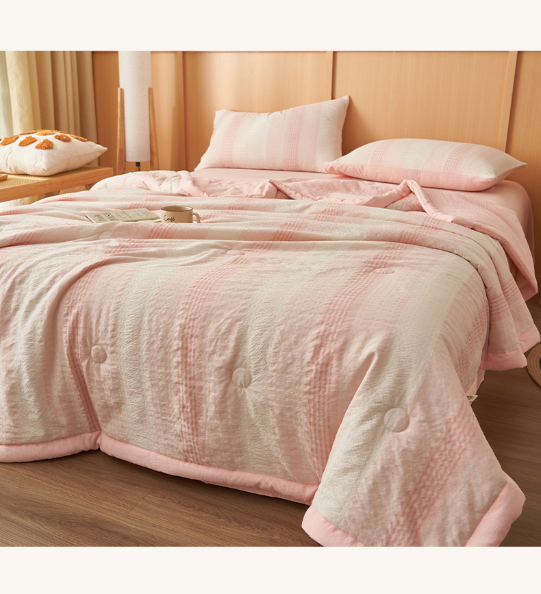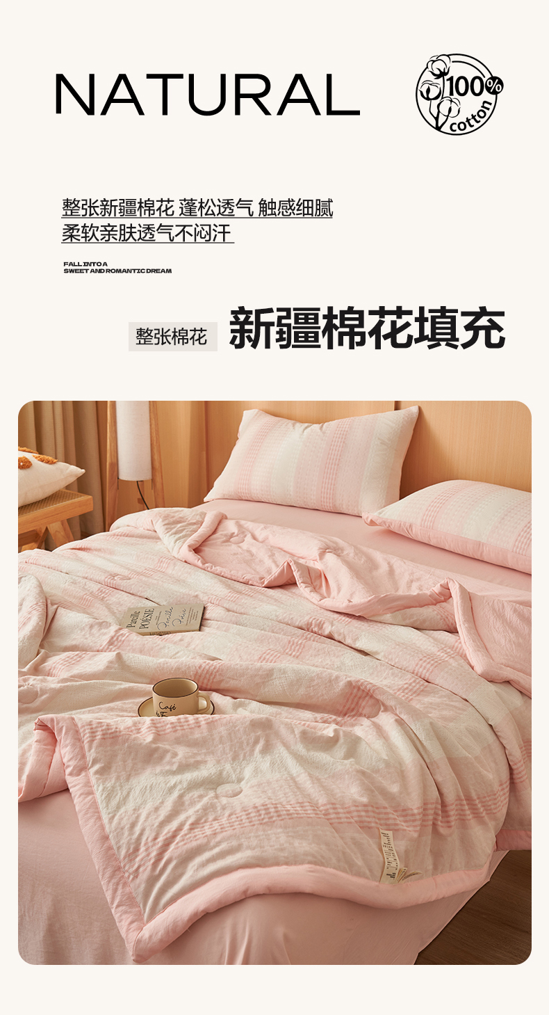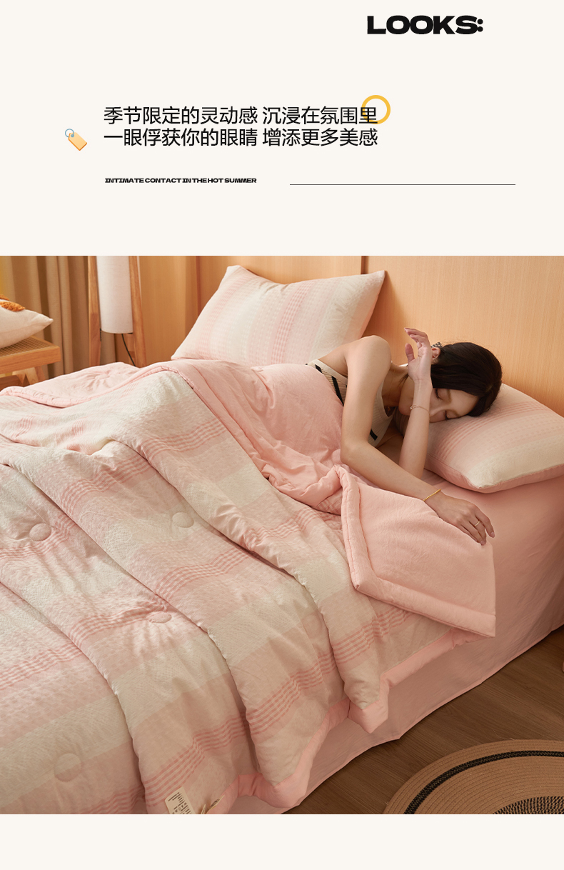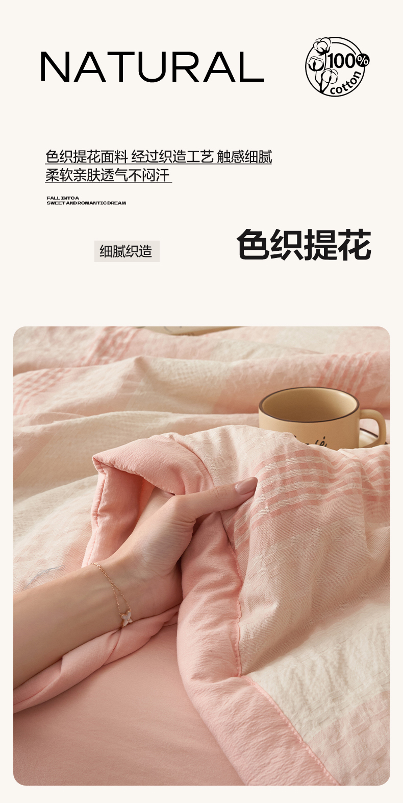 • 91家纺网 家纺一手货源 找家纺 简如 2026新款色织提花新疆棉花夏凉被四件套-织雅系列 织雅-粉