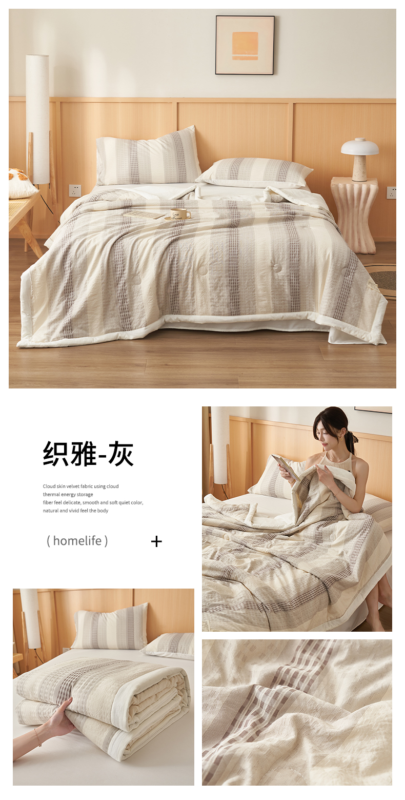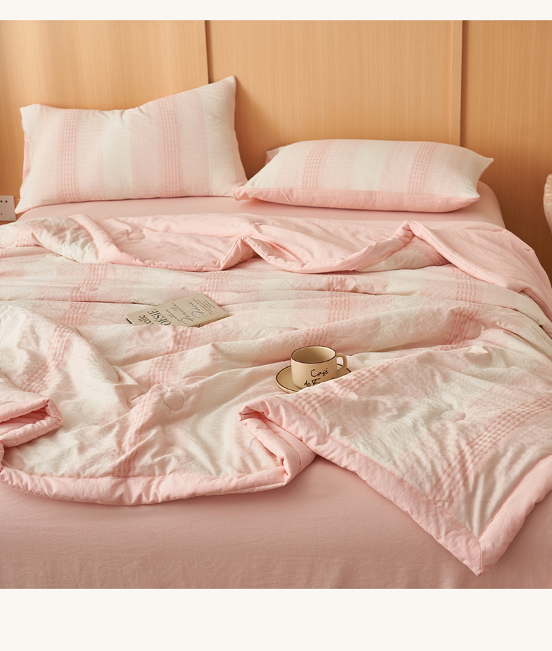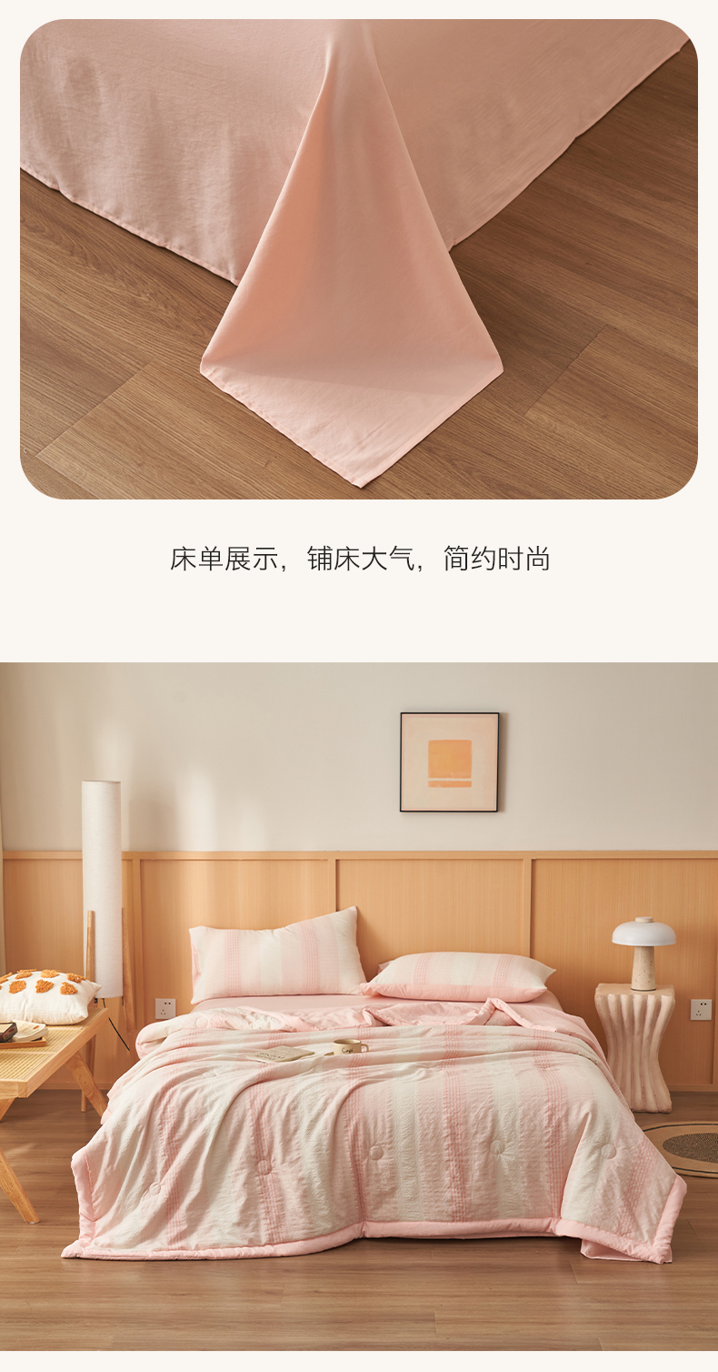 • 91家纺网 家纺一手货源 找家纺 (总)简如 2026新款里外全棉色织提花夏凉被夏被空调被四件套素条系列,素条-粉,素条-灰,素条-咖,素条-蓝,组合图仅供参考不可下单