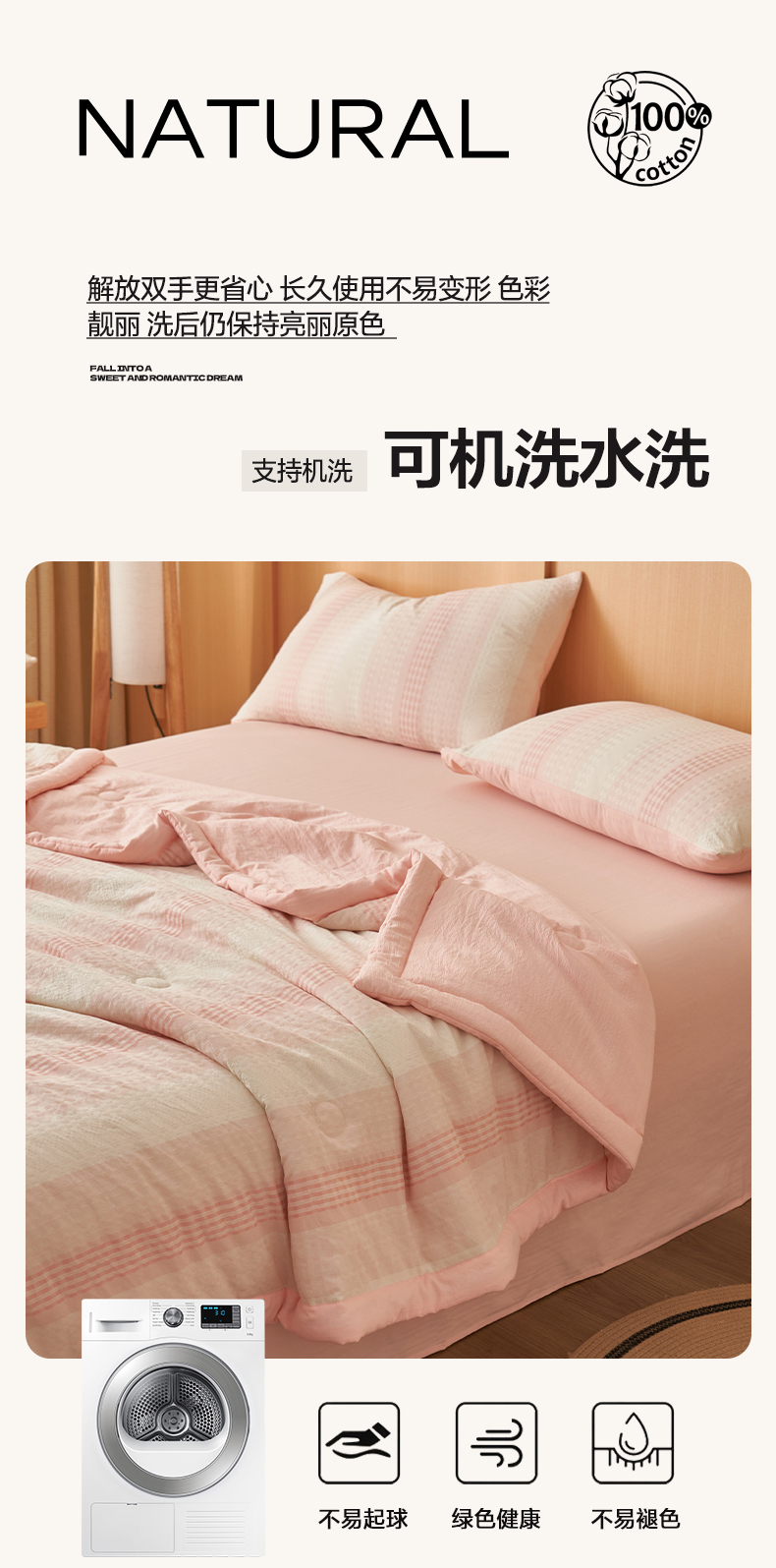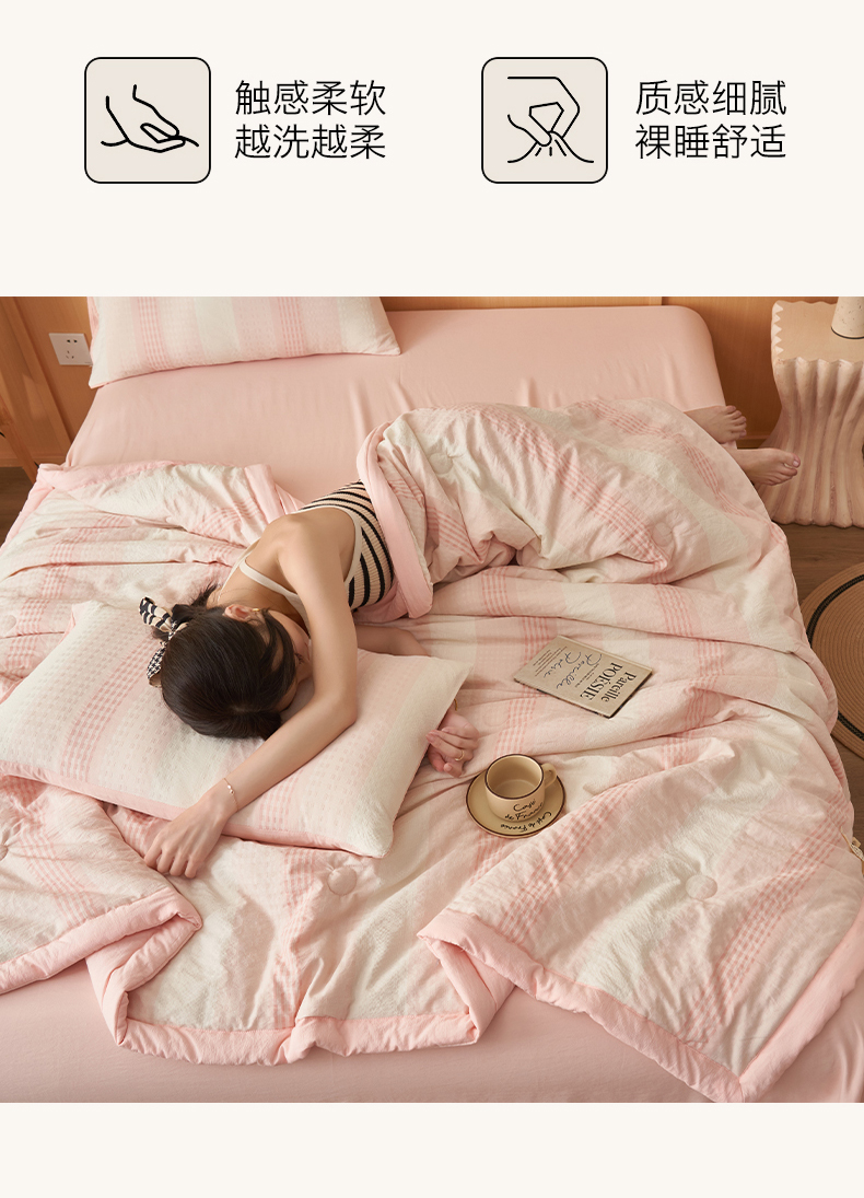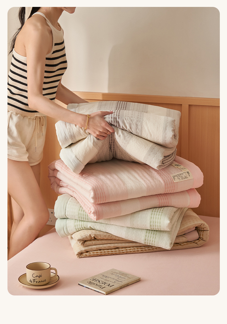 (总)简如 2026新款里外全棉色织提花夏凉被夏被空调被四件套素条系列,素条-粉,素条-灰,素条-咖,素条-蓝,组合图仅供参考不可下单