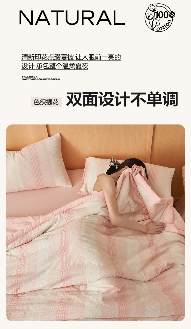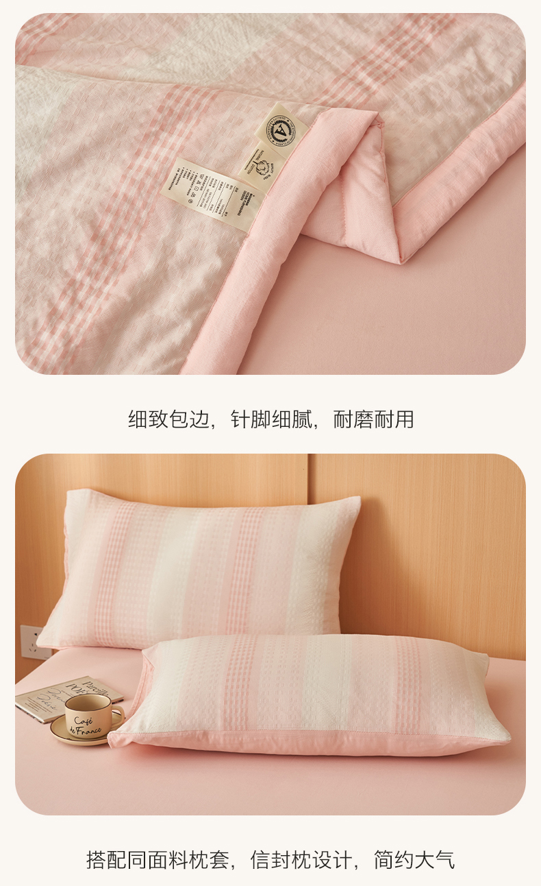当前位置: 91家纺网 > 商品网购 > 被子 > 夏被 > 简如 2026新款色织提花新疆棉花夏凉被四件套-织雅系列 织雅-粉